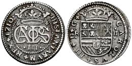 Carlos III, Pretendiente (1701-1714). 2 reales. 1710. Barcelona. (Cal-31). Ag. 4,50 g. MBC+. Est...120,00.