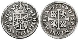 Felipe V (1700-1746). 1/2 real. 1738. Madrid. JF. (Cal-185). Ag. 1,40 g. Rayita en reverso. MBC-. Est...45,00.