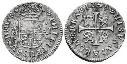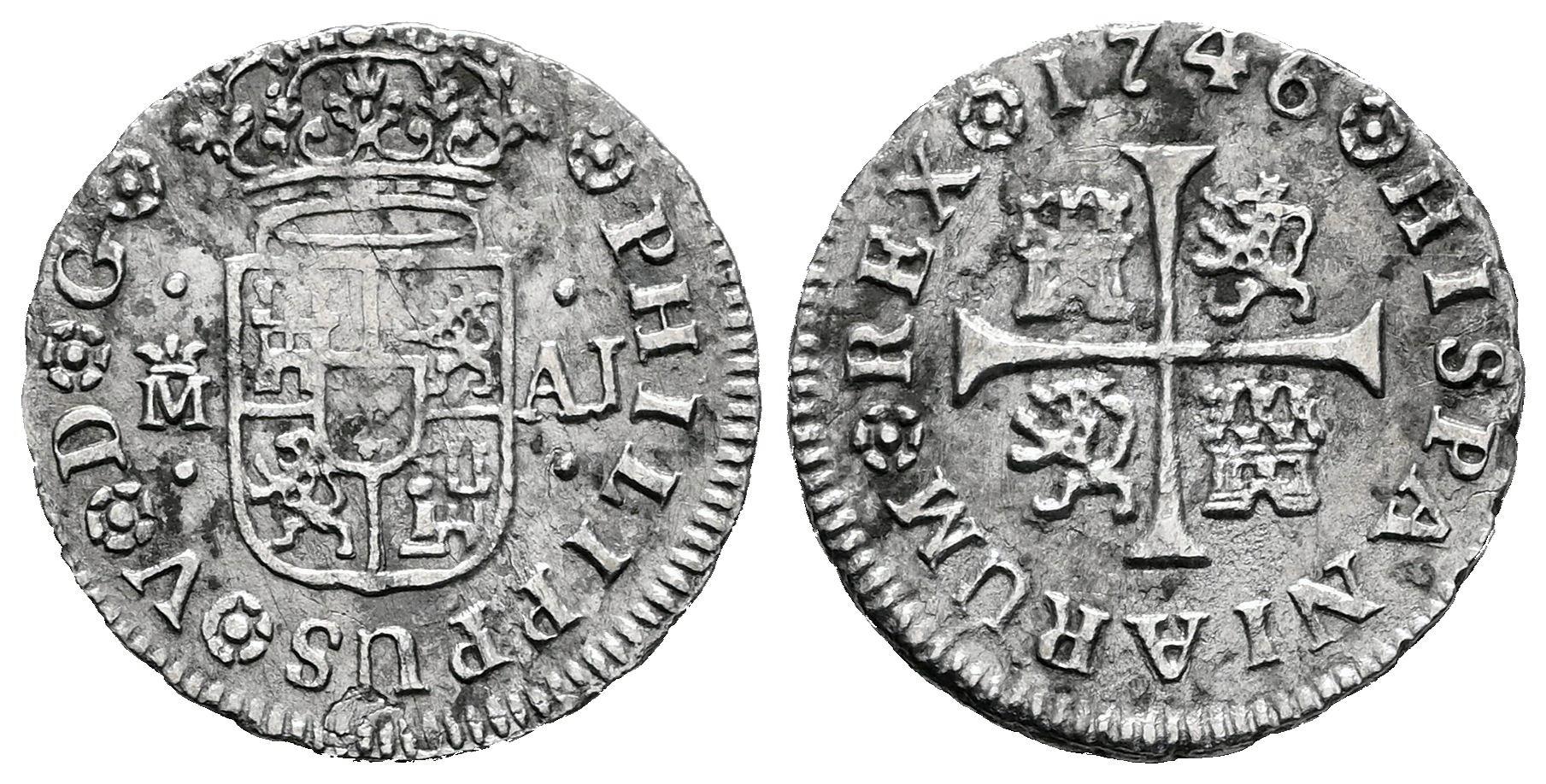 Felipe V (1700-1746). 1/2 real. 1746. Madrid. AJ. (Cal-188). Ag. 1,28 g. Oxidaciones superficiales limpiadas. MBC. Est...20,00.
