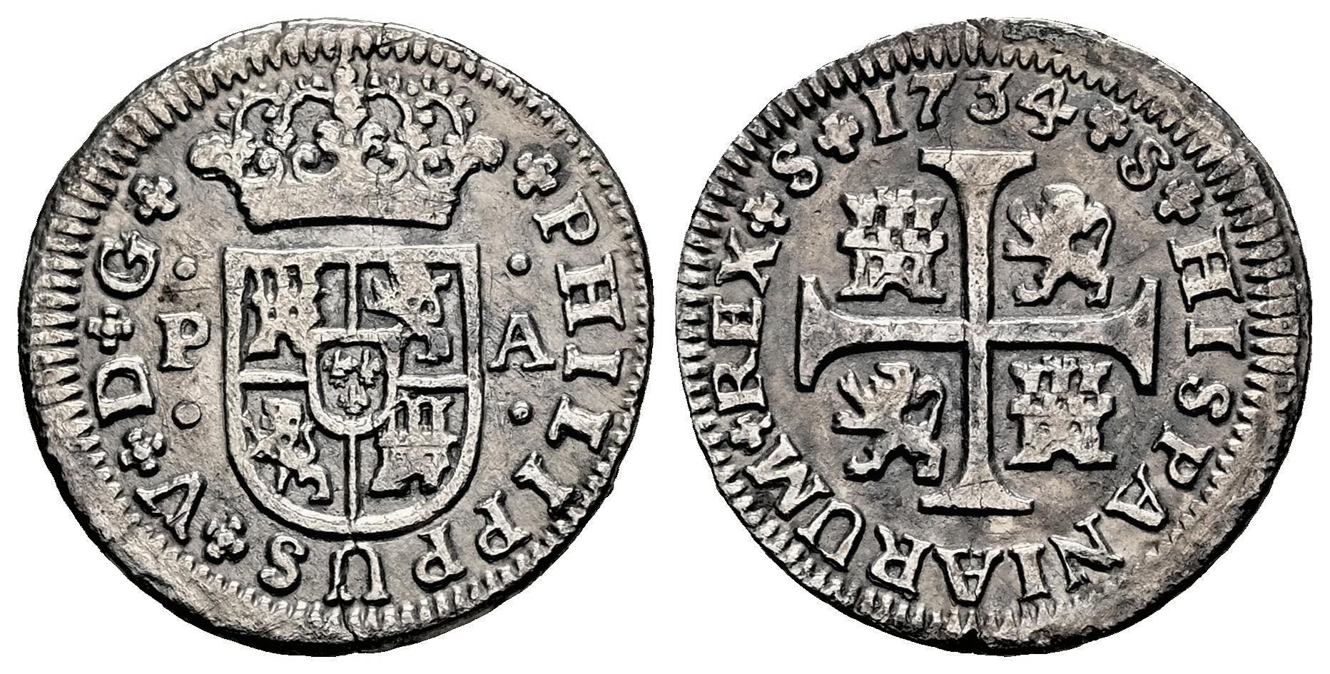 Felipe V (1700-1746). 1/2 real. 1734. Sevilla. PA. (Cal-340). Ag. 1,22 g. Ex Monedalia 7 (10/03/2022), lote 204. MBC. Est...50,00.
