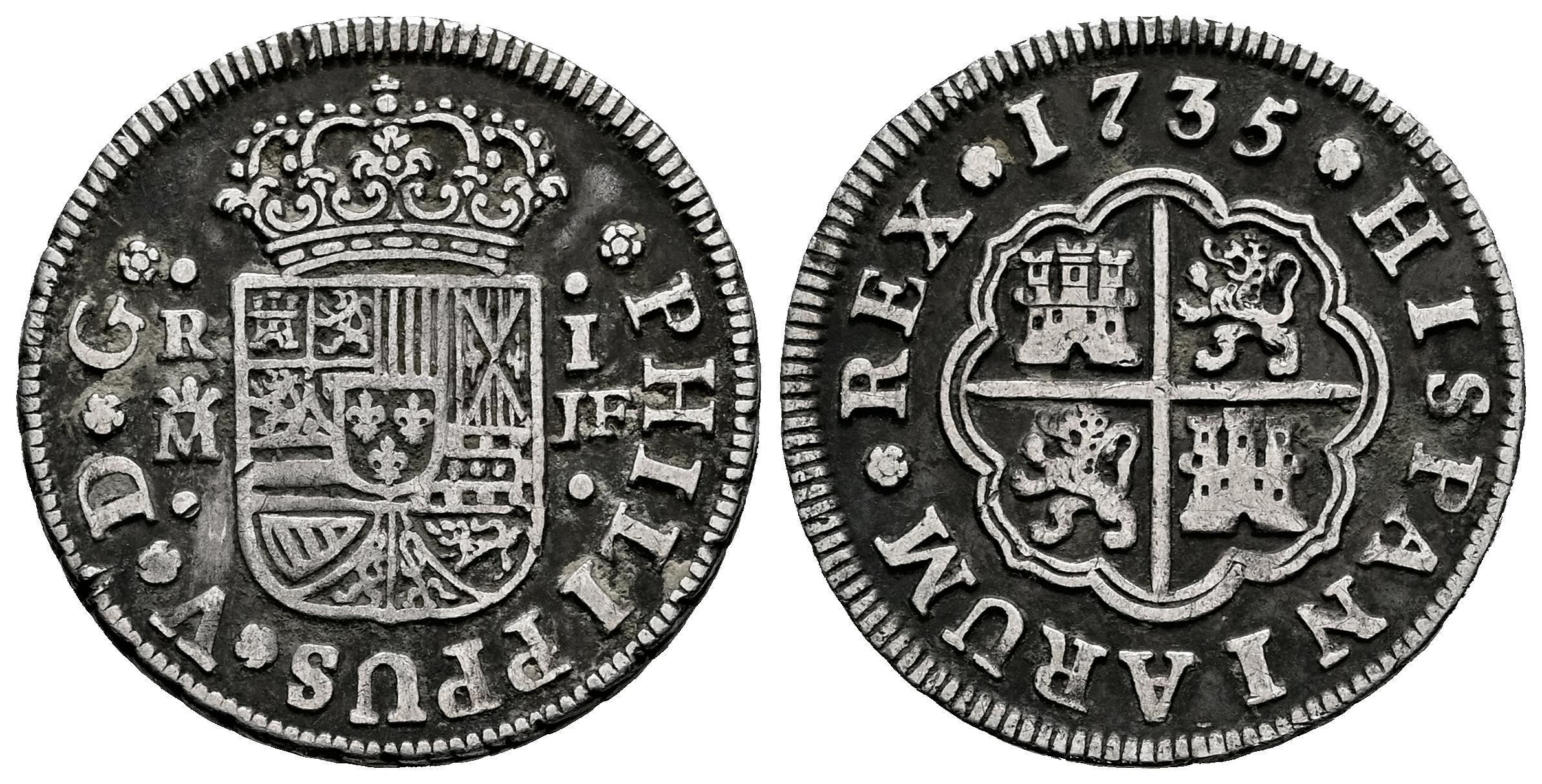 Felipe V (1700-1746). 1 real. 1735. Madrid. JF. (Cal-450). Ag. 2,86 g. MBC-. Est...50,00.