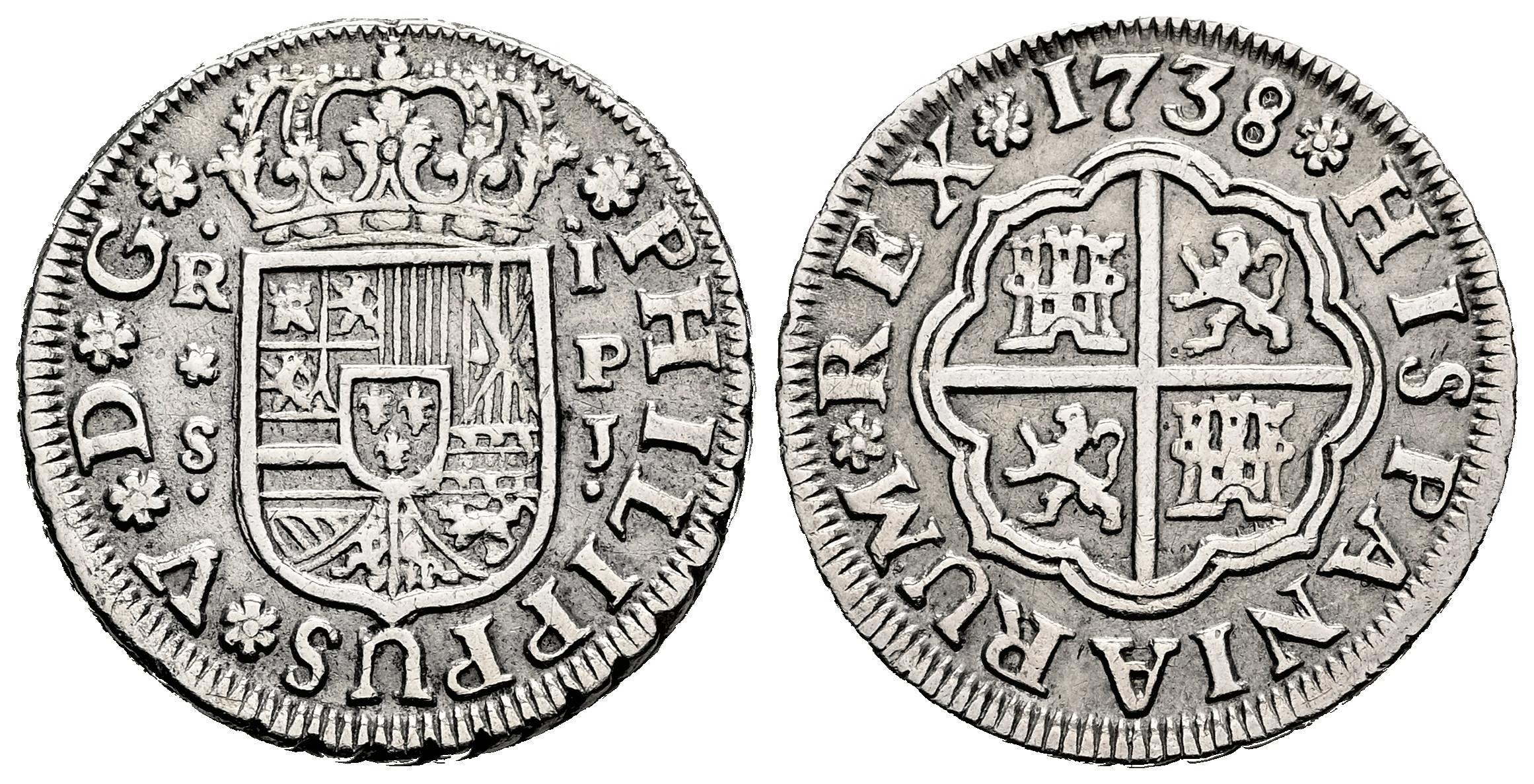 Felipe V (1700-1746). 1 real. 1738. Sevilla. PJ. (Cal-661). Ag. 2,84 g. MBC+. Est...60,00.