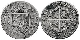 Felipe V (1700-1746). 2 reales. 1722. Sevilla. J. (Cal-980). Ag. 4,73 g. MBC-. Est...40,00.