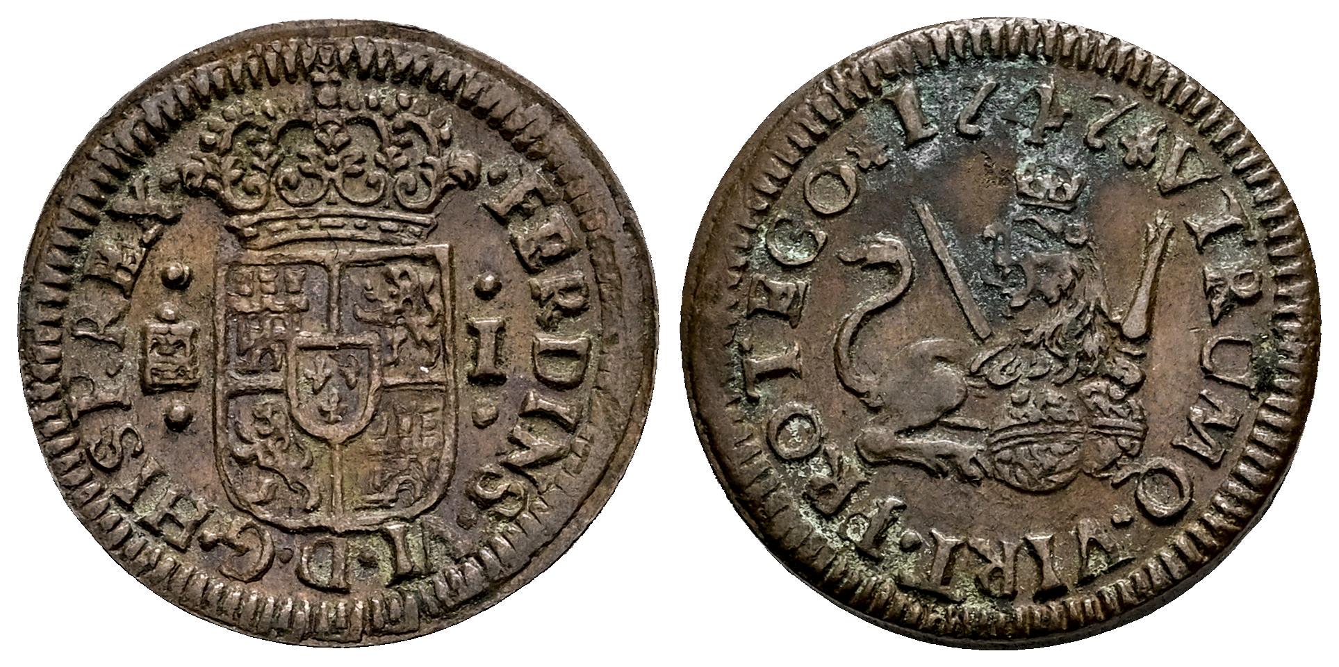 Fernando VI (1746-1759). 1 maravedí. 1747. Segovia. (Cal-19). Ae. 1,17 g. Restos de verdín en reverso. EBC-/MBC+. Est...45,00.