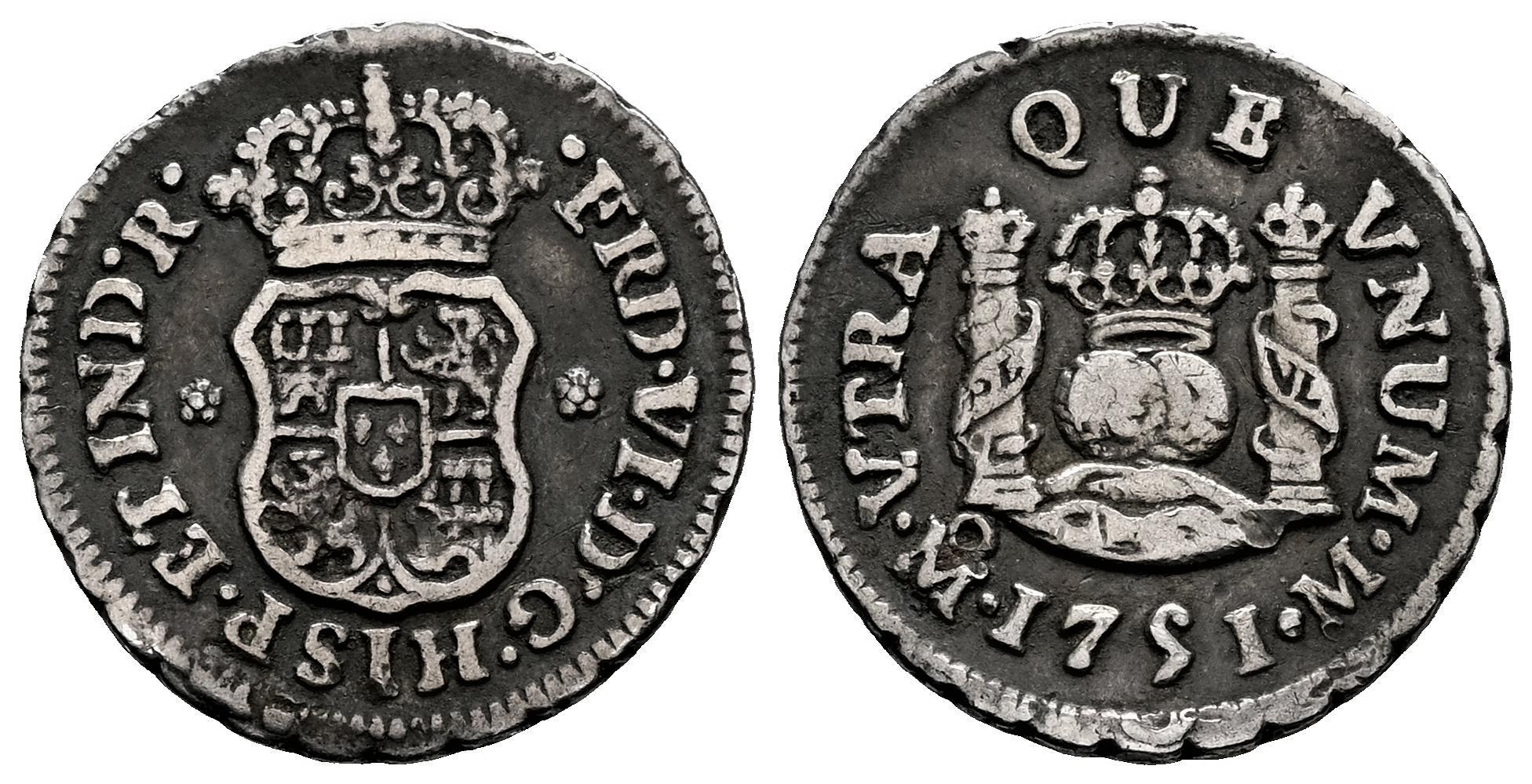 Fernando VI (1746-1759). 1/2 real. 1751. México. M. (Cal-84). Ag. 1,65 g. Golpe en el canto. Pátina. MBC. Est...90,00.