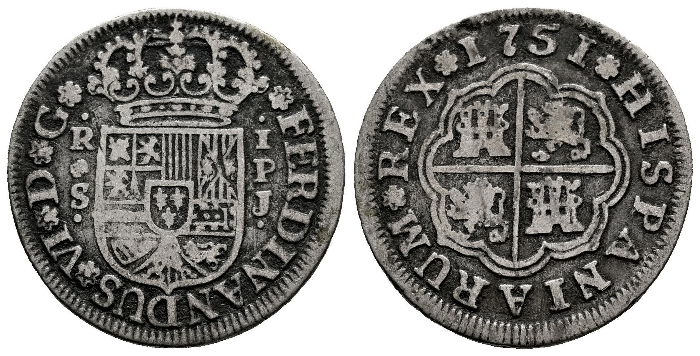 Fernando VI (1746-1759). 1 real. 1751. Sevilla. PJ. (Cal-236). Ag. 2,72 g. MBC-. Est...50,00.