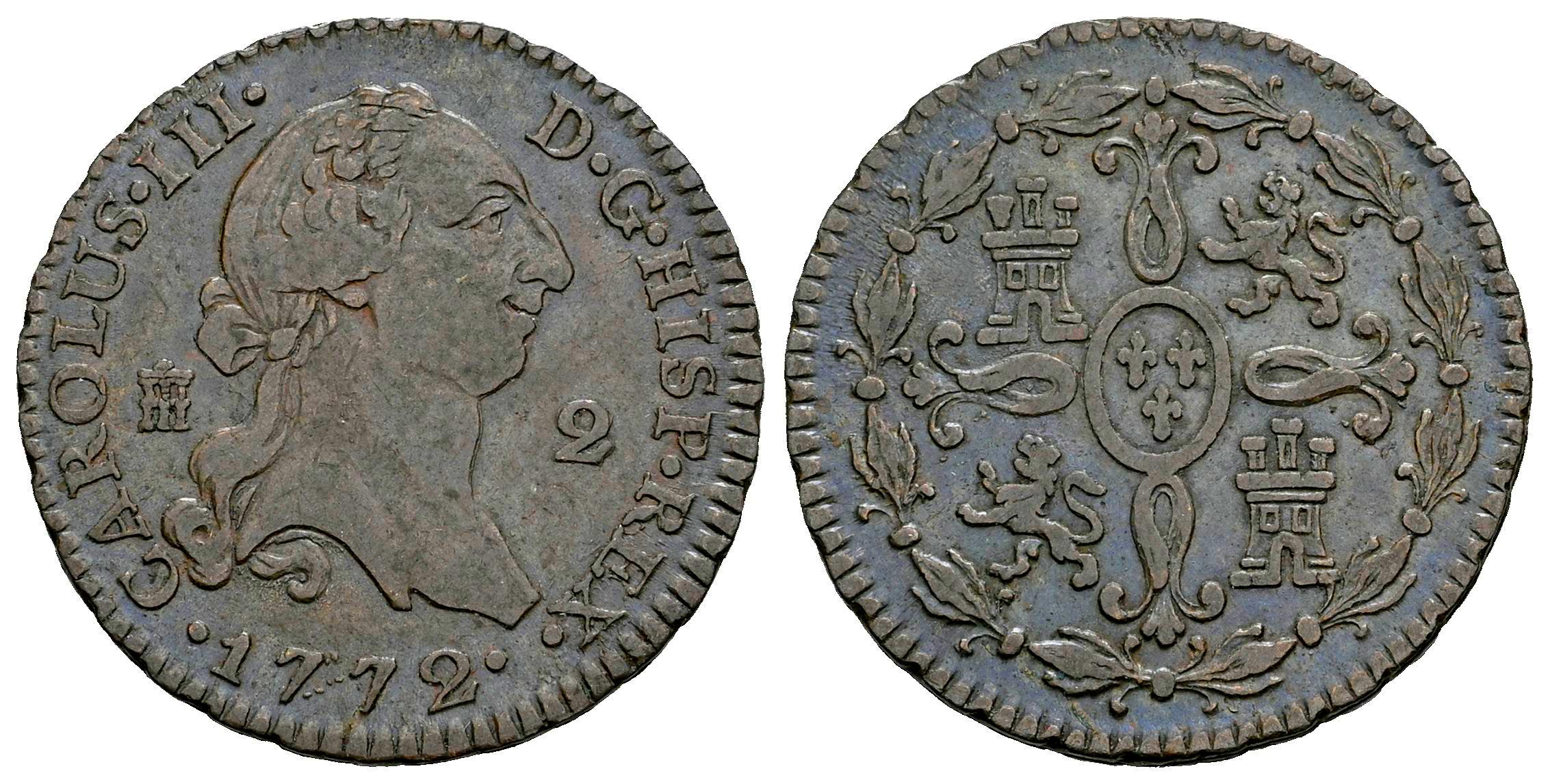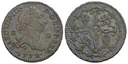 Carlos III (1759-1788). 2 maravedís. 1772. Segovia. (Cal-34). Ae. 2,44 g. BC+. Est...12,00.
