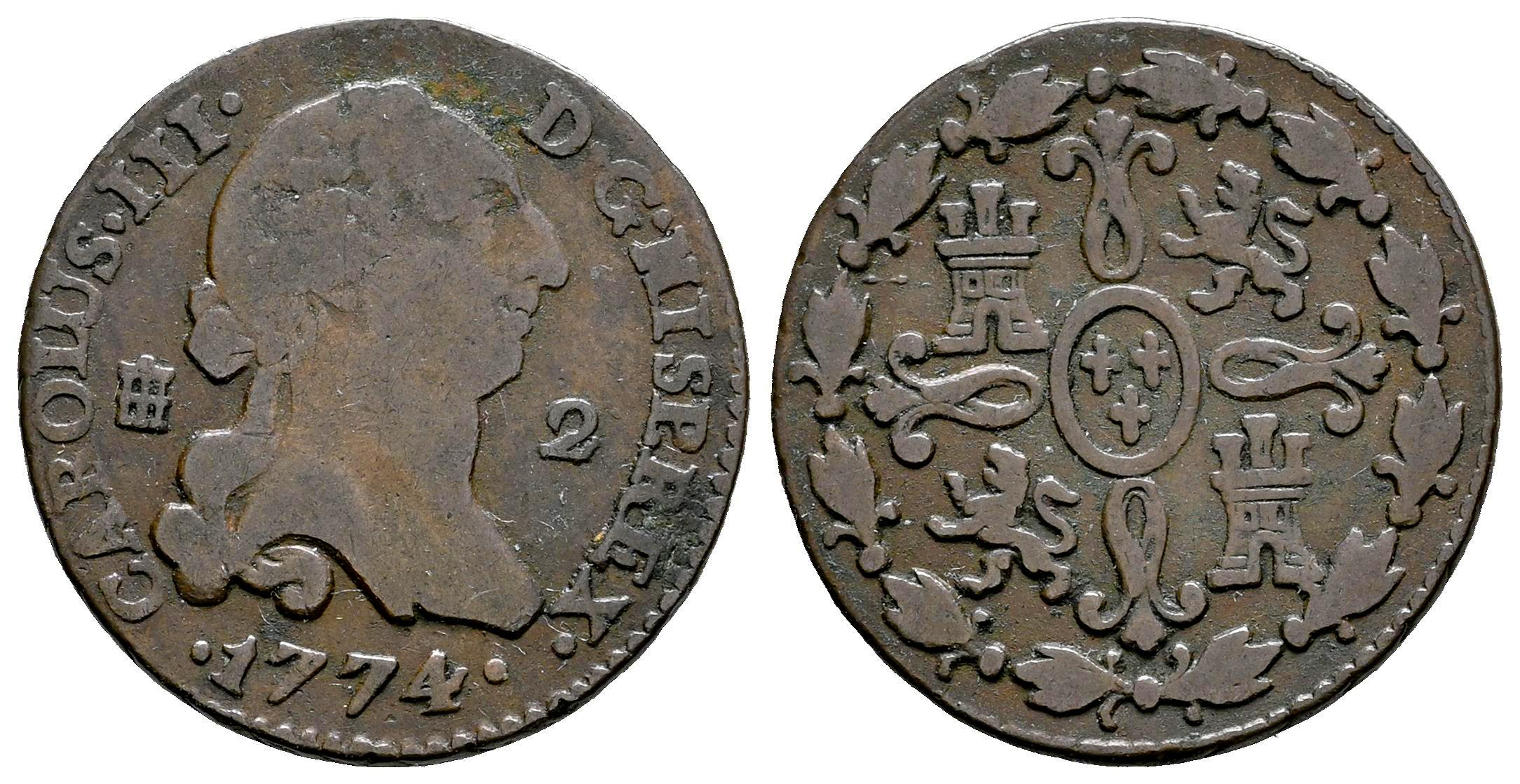 Carlos III (1759-1788). 2 maravedís. 1774. Segovia. (Cal-36). Ae. 2,24 g. BC. Est...10,00.