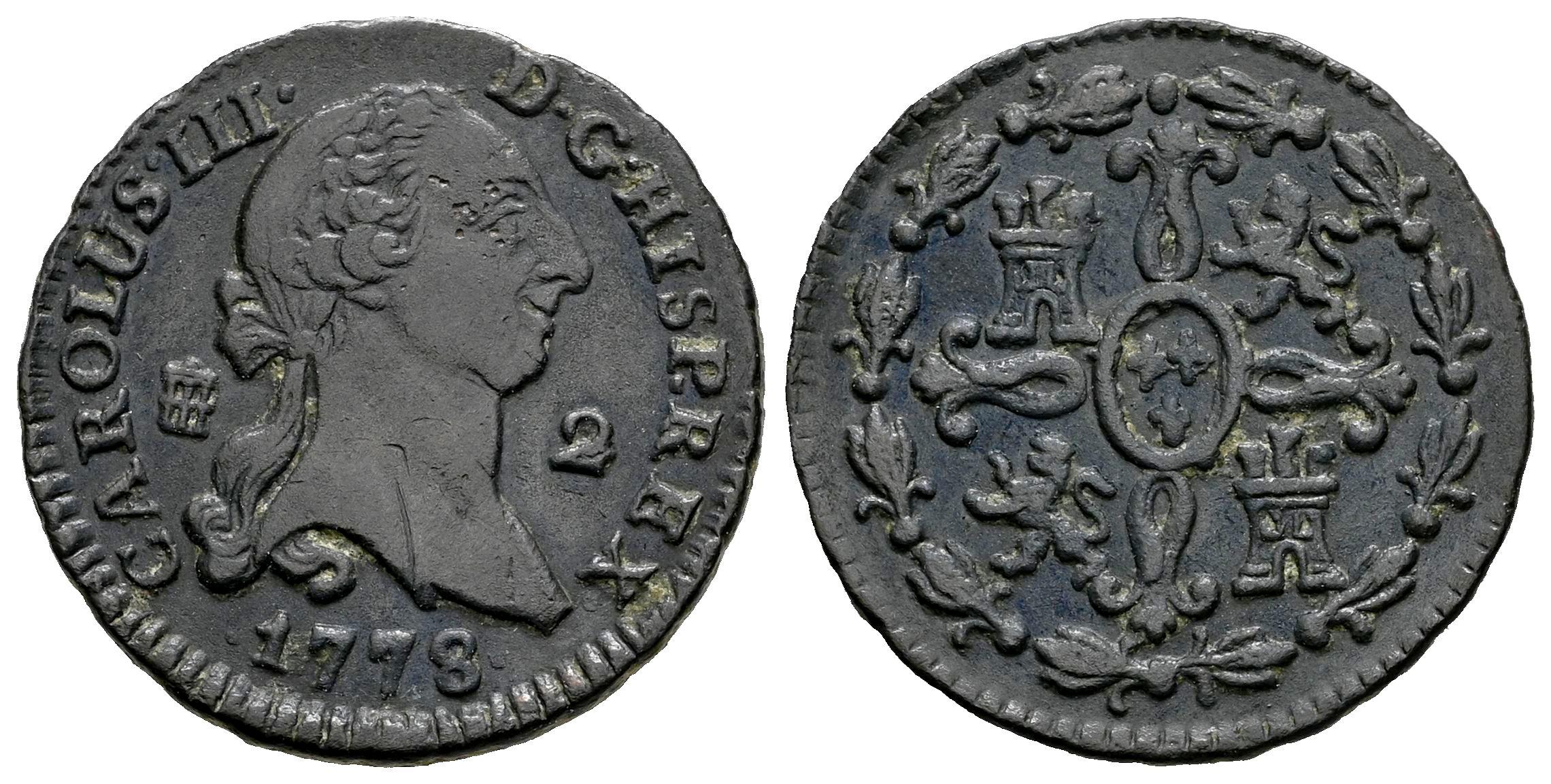 Carlos III (1759-1788). 2 maravedís. 1778. Segovia. (Cal-42). Ae. 2,42 g. MBC. Est...20,00.