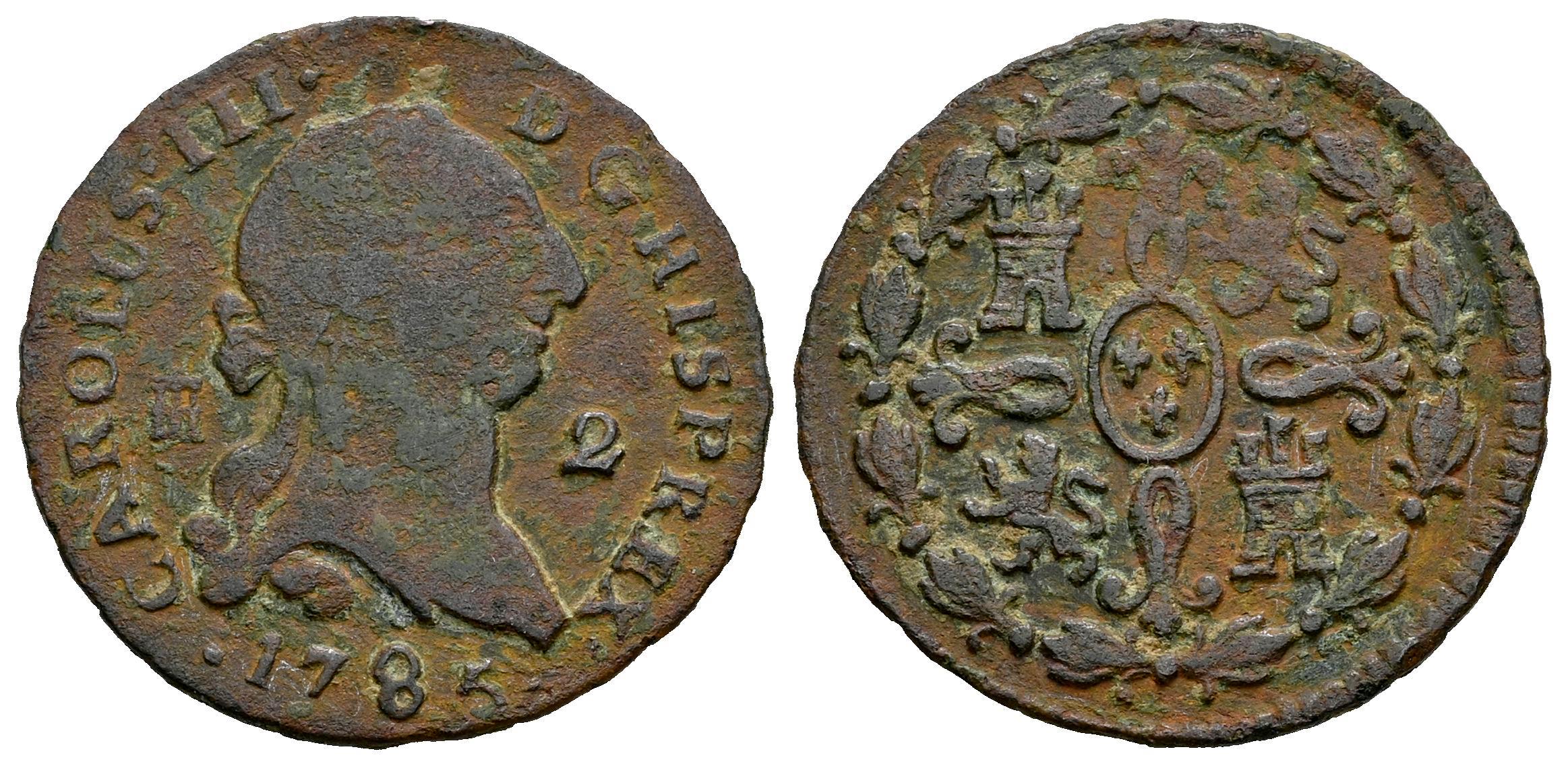 Carlos III (1759-1788). 2 maravedís. 1785. Segovia. (Cal-45). Ae. 2,28 g. BC. Est...10,00.