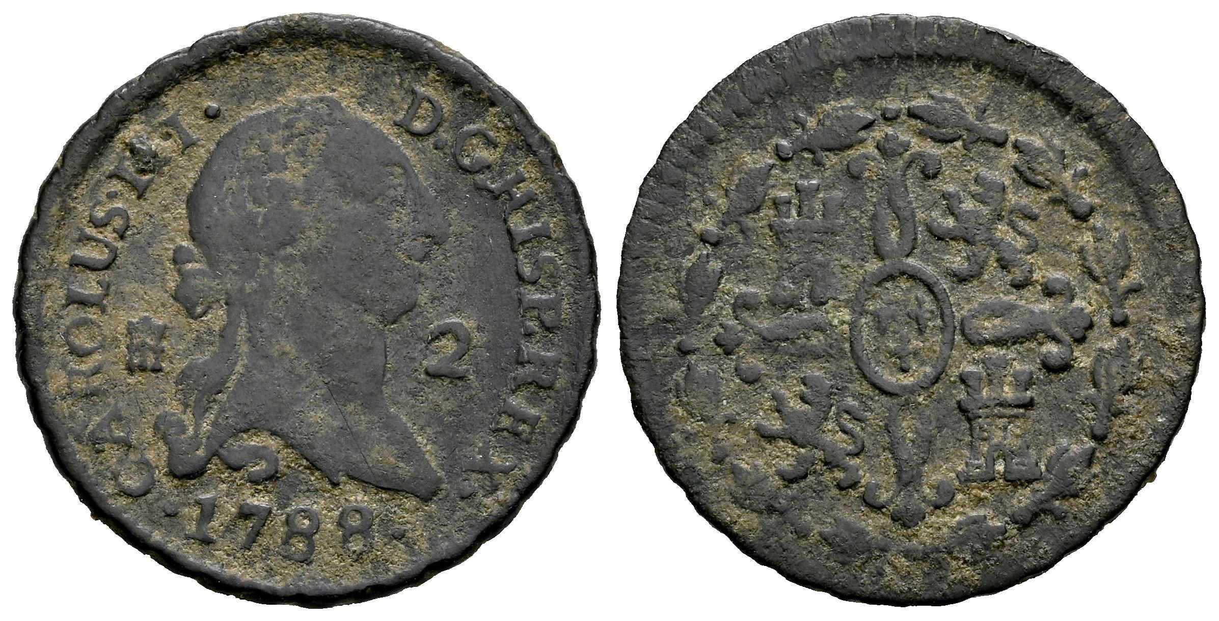 Carlos III (1759-1788). 2 maravedís. 1788. Segovia. (Cal-49). Ae. 2,36 g. BC+. Est...10,00.