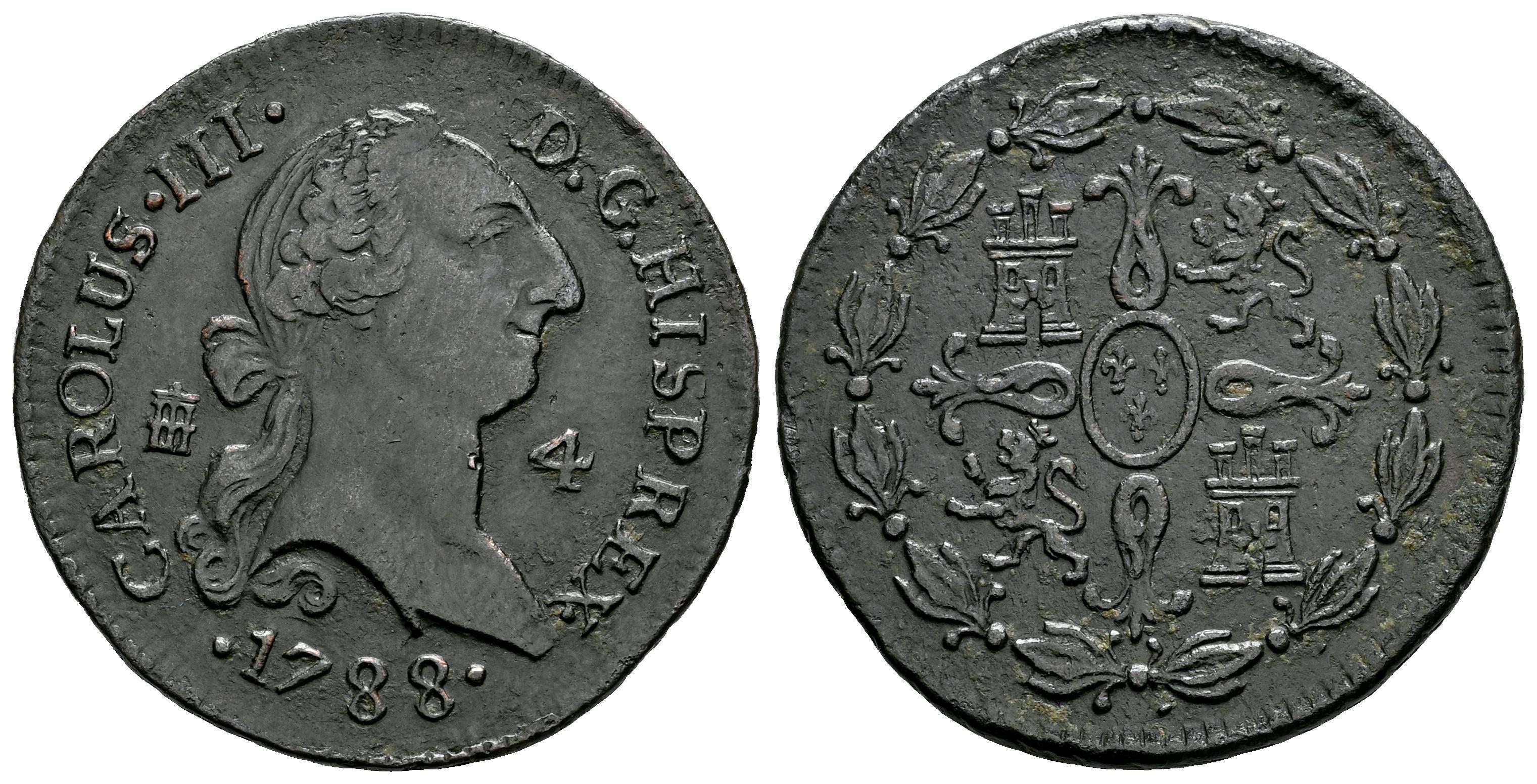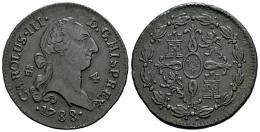 Carlos III (1759-1788). 4 maravedís. 1788. Segovia. (Cal-67). Ae. 5,30 g. Oxidaciones limpidas. Rayitas. MBC-/MBC. Est...70,00.