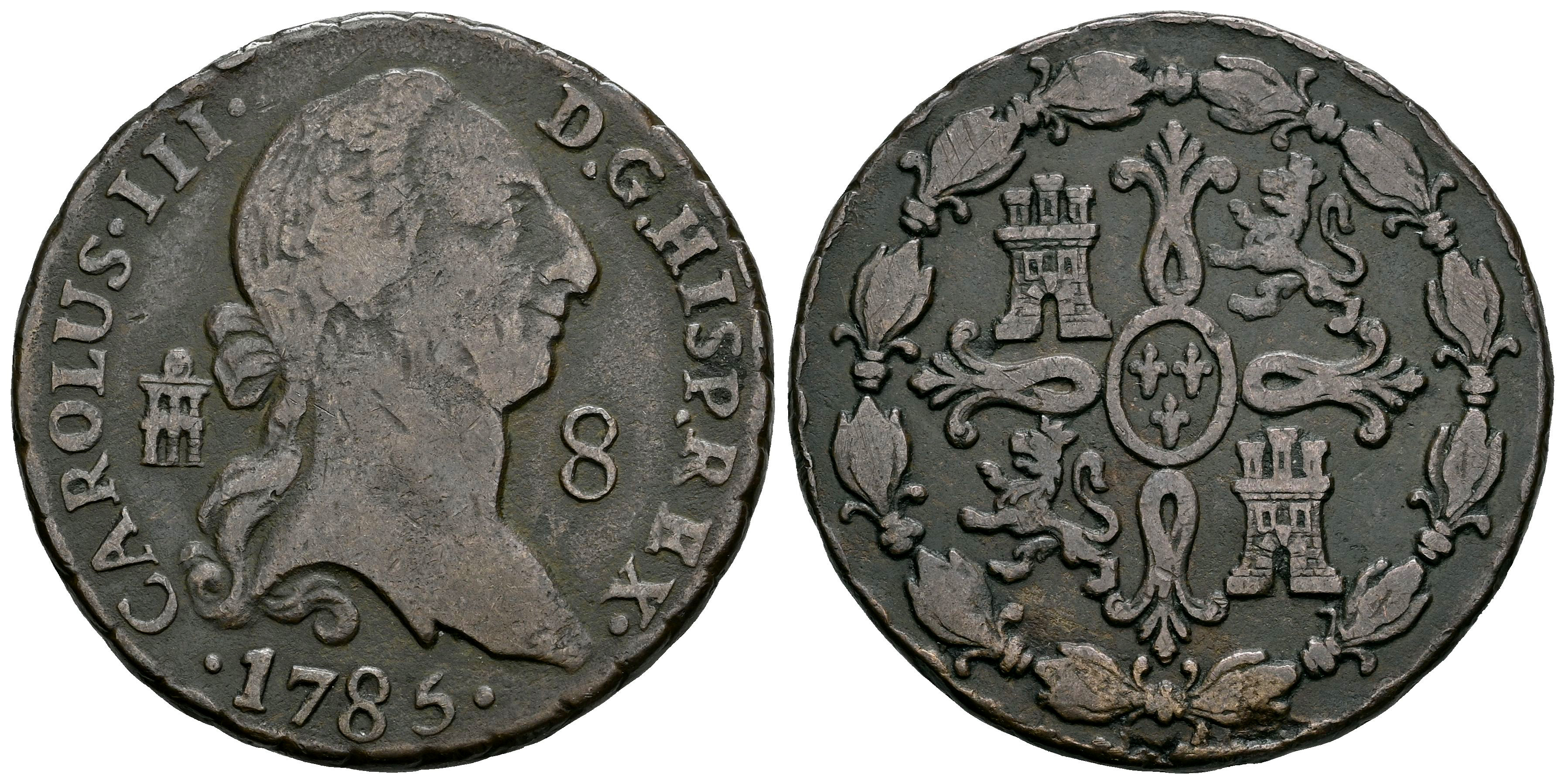 Carlos III (1759-1788). 8 maravedís. 1785. Segovia. (Cal-85). Ae. 11,44 g. BC+/MBC-. Est...30,00.