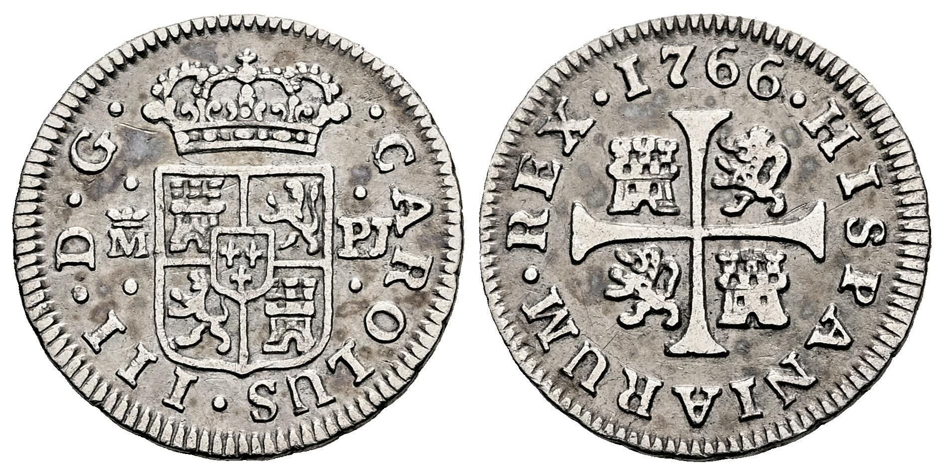 Carlos III (1759-1788). 1/2 real. 1766. Madrid. PJ. (Cal-153). Ag. 1,44 g. Ex Monedalia 8 (20/09/2022), lote 382. MBC. Est...50,00.