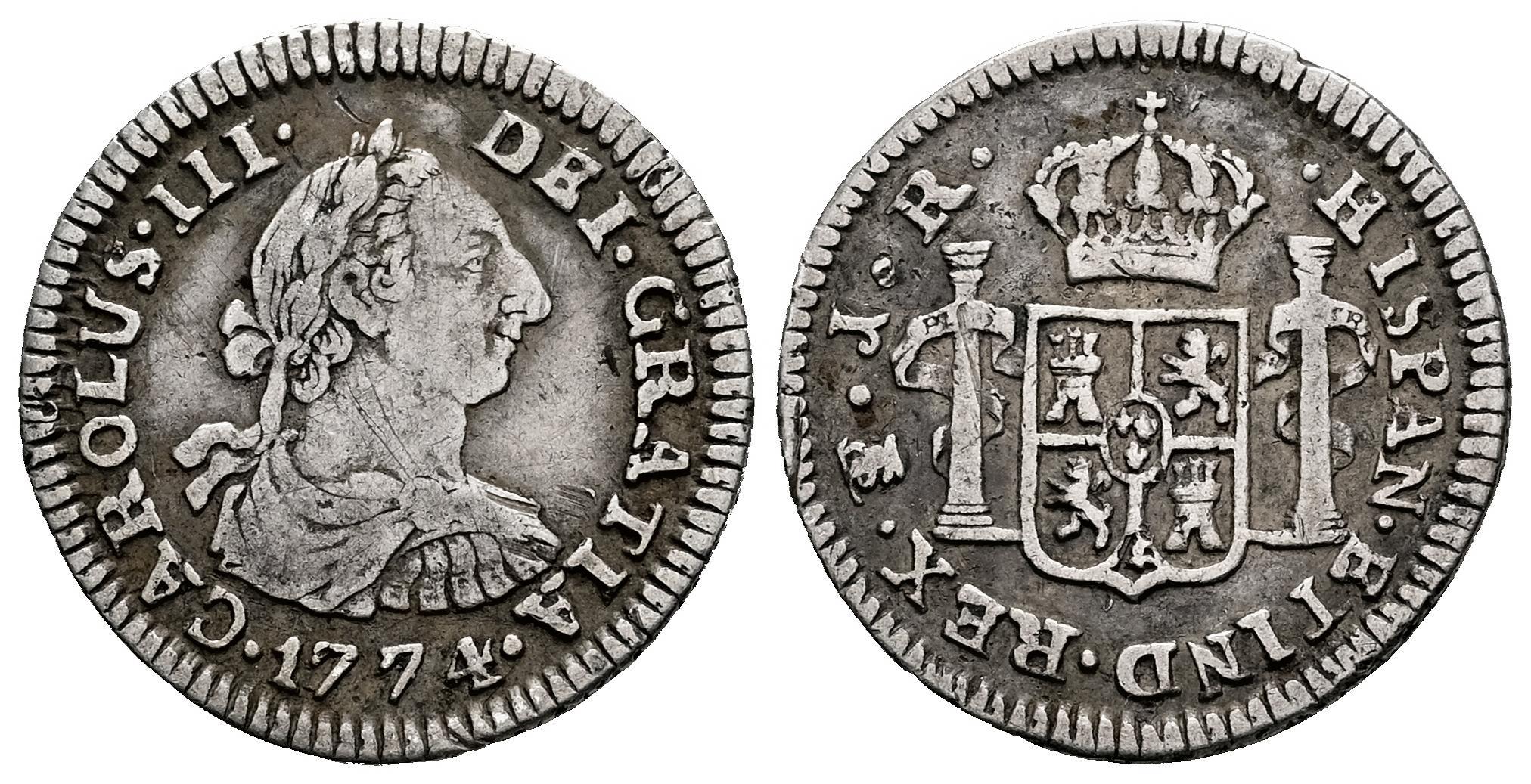 Carlos III (1759-1788). 1/2 real. 1774. Potosí. JR. (Cal-239). Ag. 1,63 g. MBC-/MBC. Est...50,00.