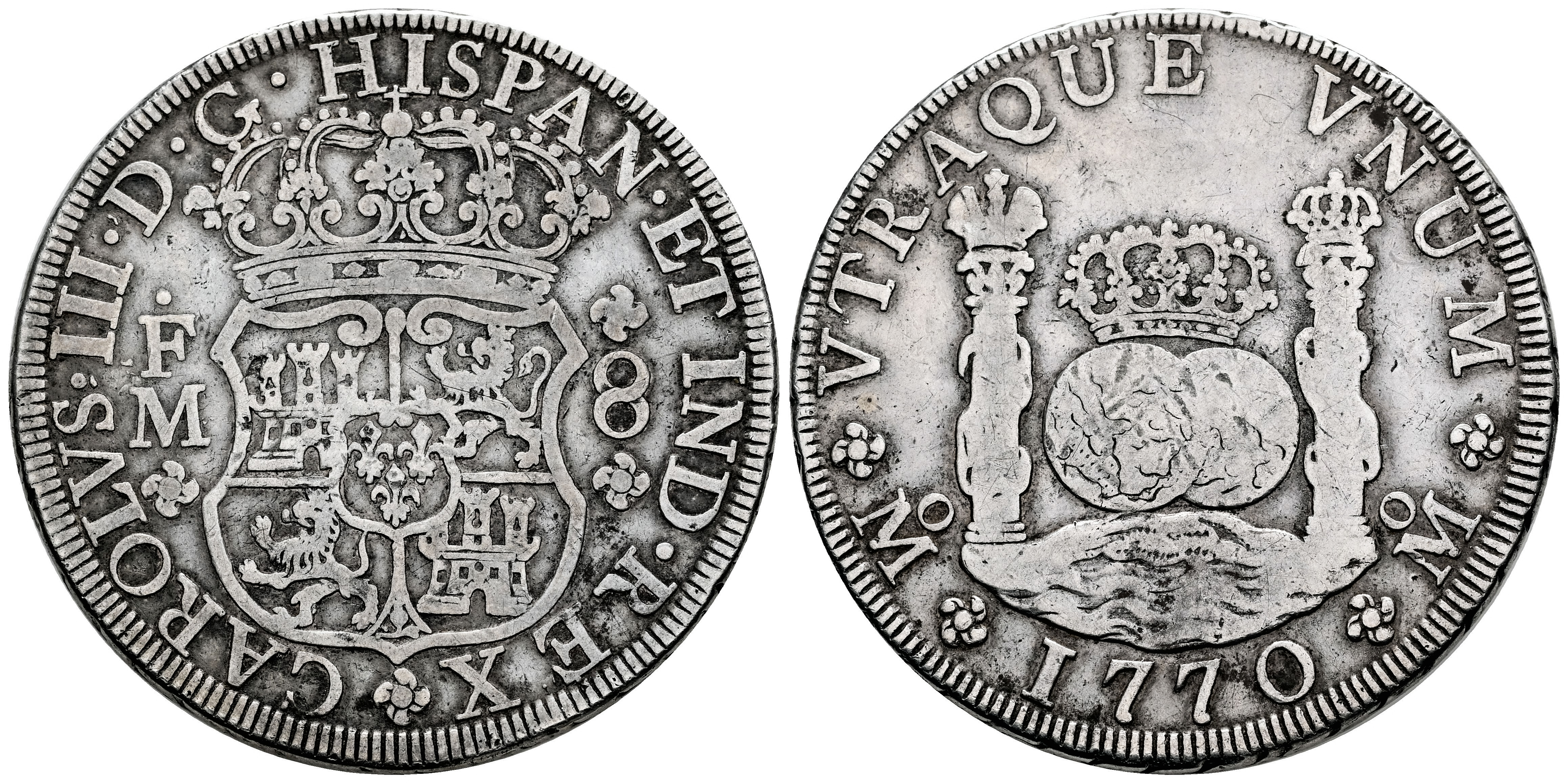 Carlos III (1759-1788). 8 reales. 1770. México. FM. (Cal-1101). Ag. 26,48 g. Limpiada. MBC-/BC+. Est...250,00.