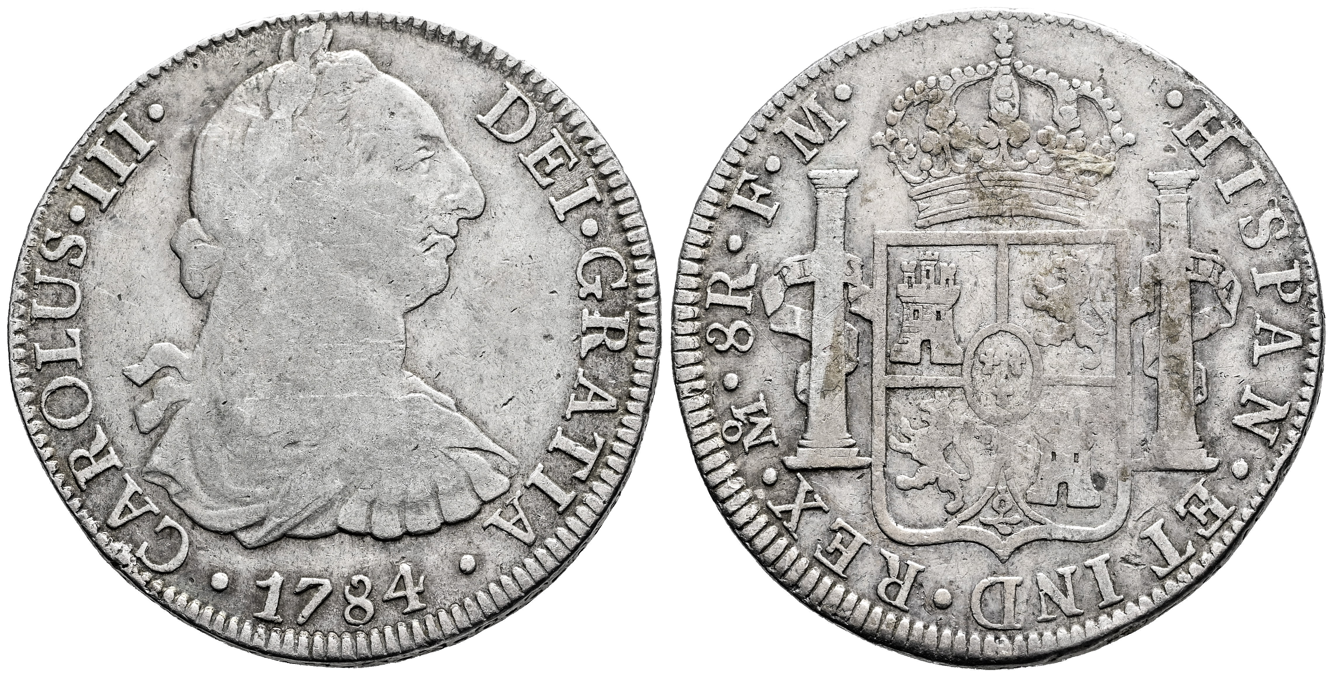 Carlos III (1759-1788). 8 reales. 1784. México. FM. (Cal-1126). Ag. 26,68 g. BC+/MBC-. Est...100,00.