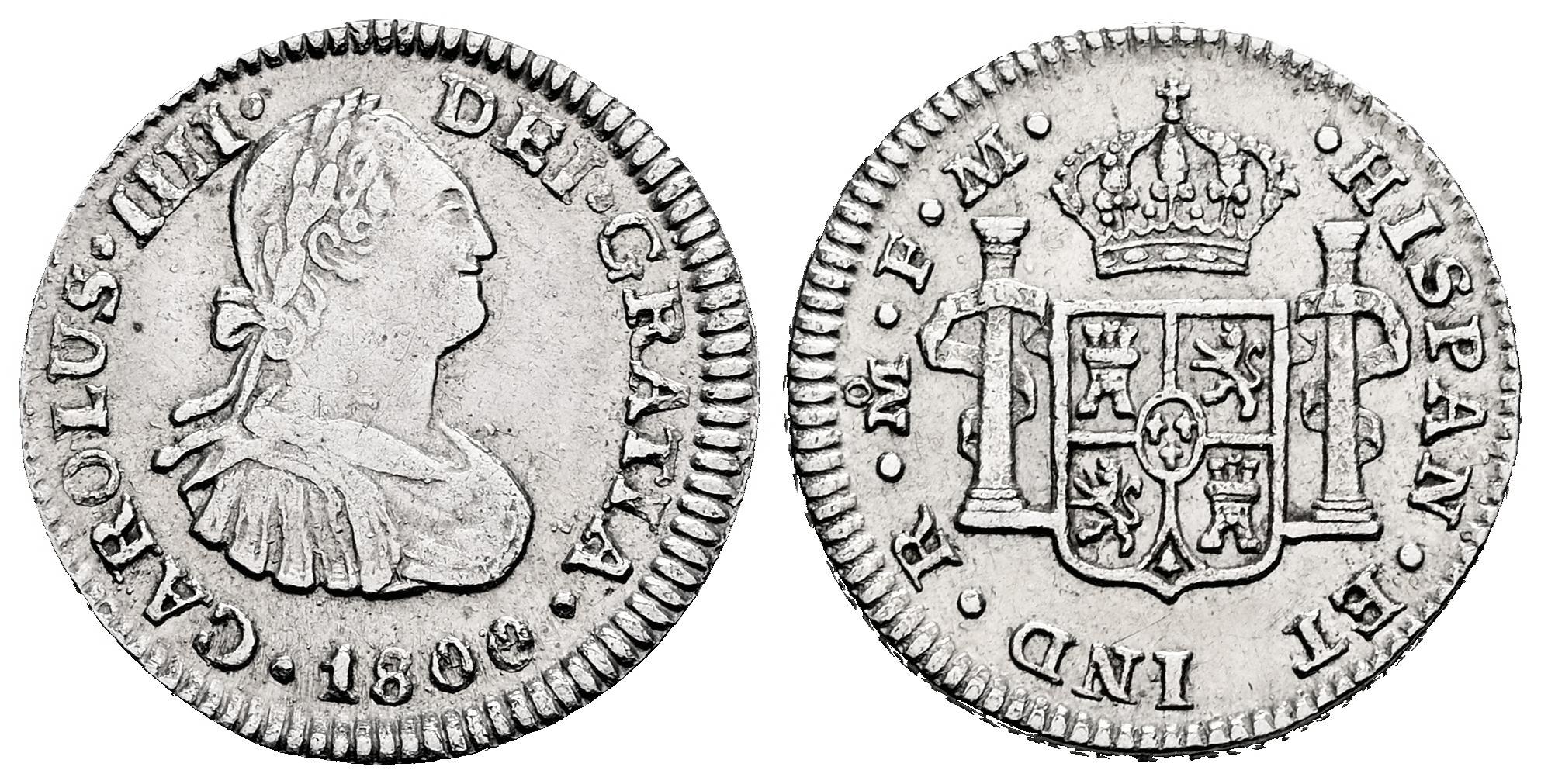 Carlos IV (1788-1808). 1/2 real. 1800/1799. México. FM. (Cal-284). Ag. 1,68 g. Clara rectificación de fecha. Limpiada. MBC/MBC+. Est...100,00.