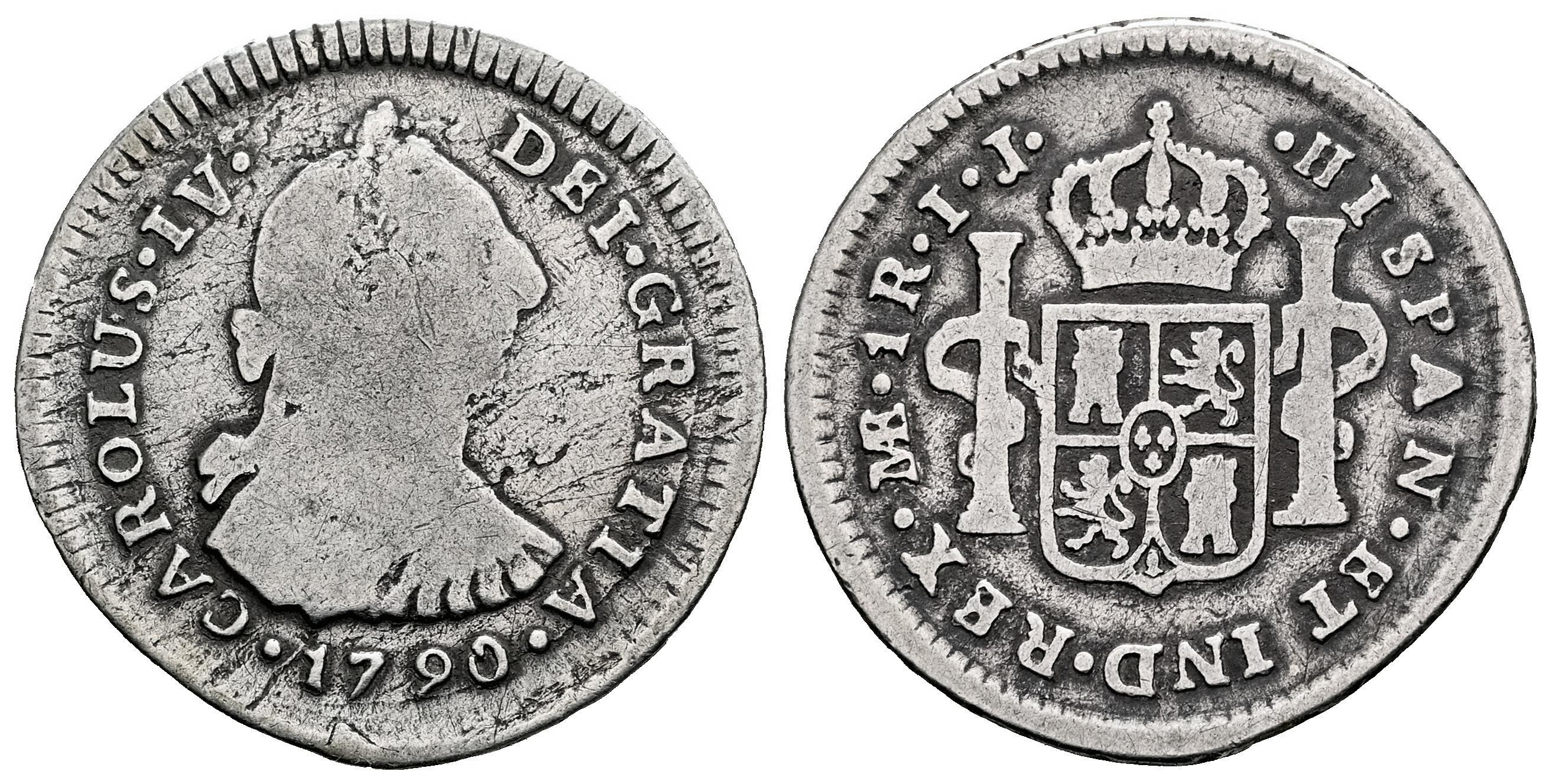 Carlos IV (1788-1808). 1 real. 1790. Lima. IJ. (Cal-386). Ag. 3,07 g. Busto de Carlos III y ordinal IV. Escasa. BC. Est...70,00.
