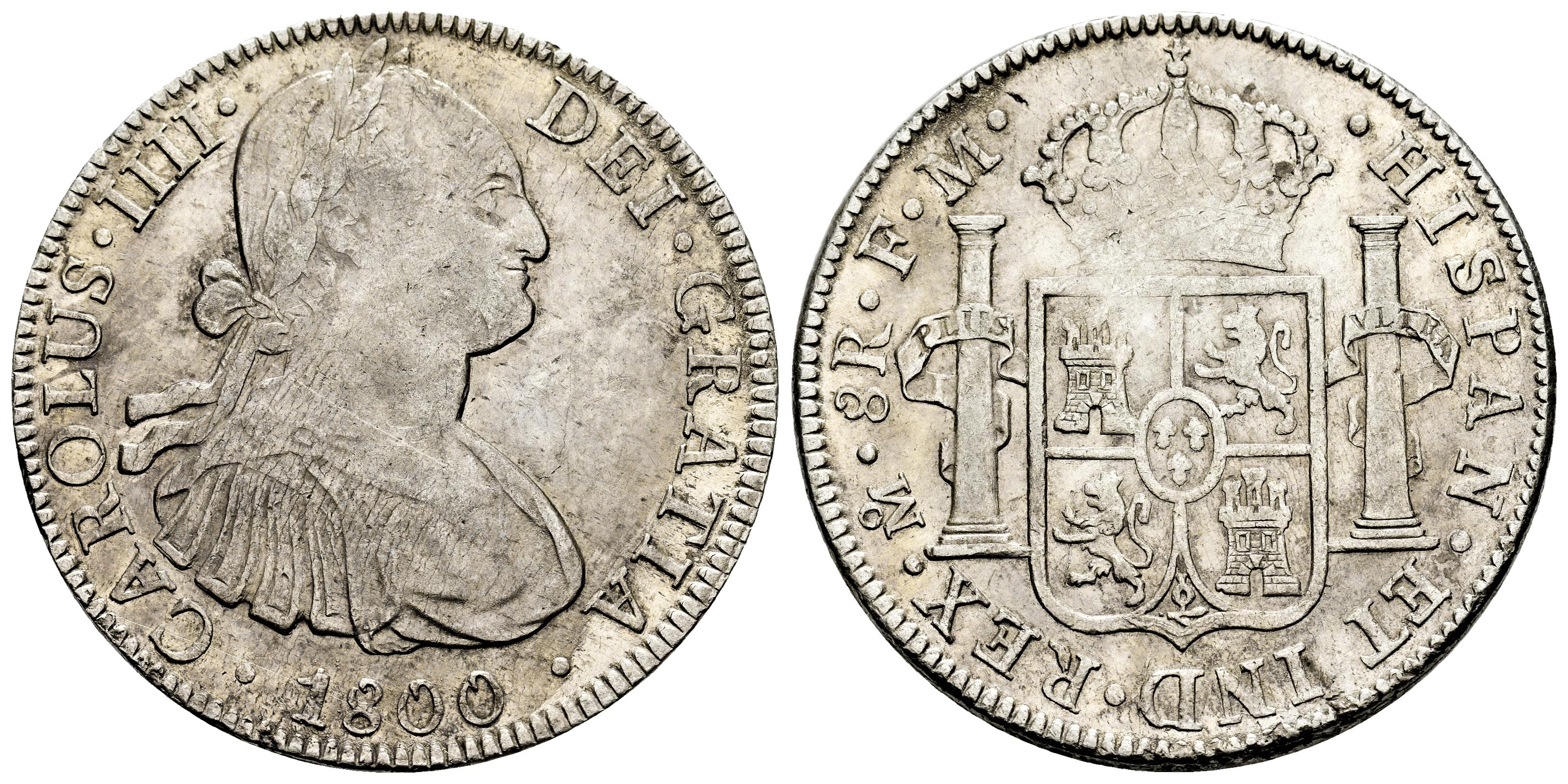 Carlos IV (1788-1808). 8 reales. 1800. México. FM. (Cal-965). Ag. 26,74 g. MBC. Est...120,00.