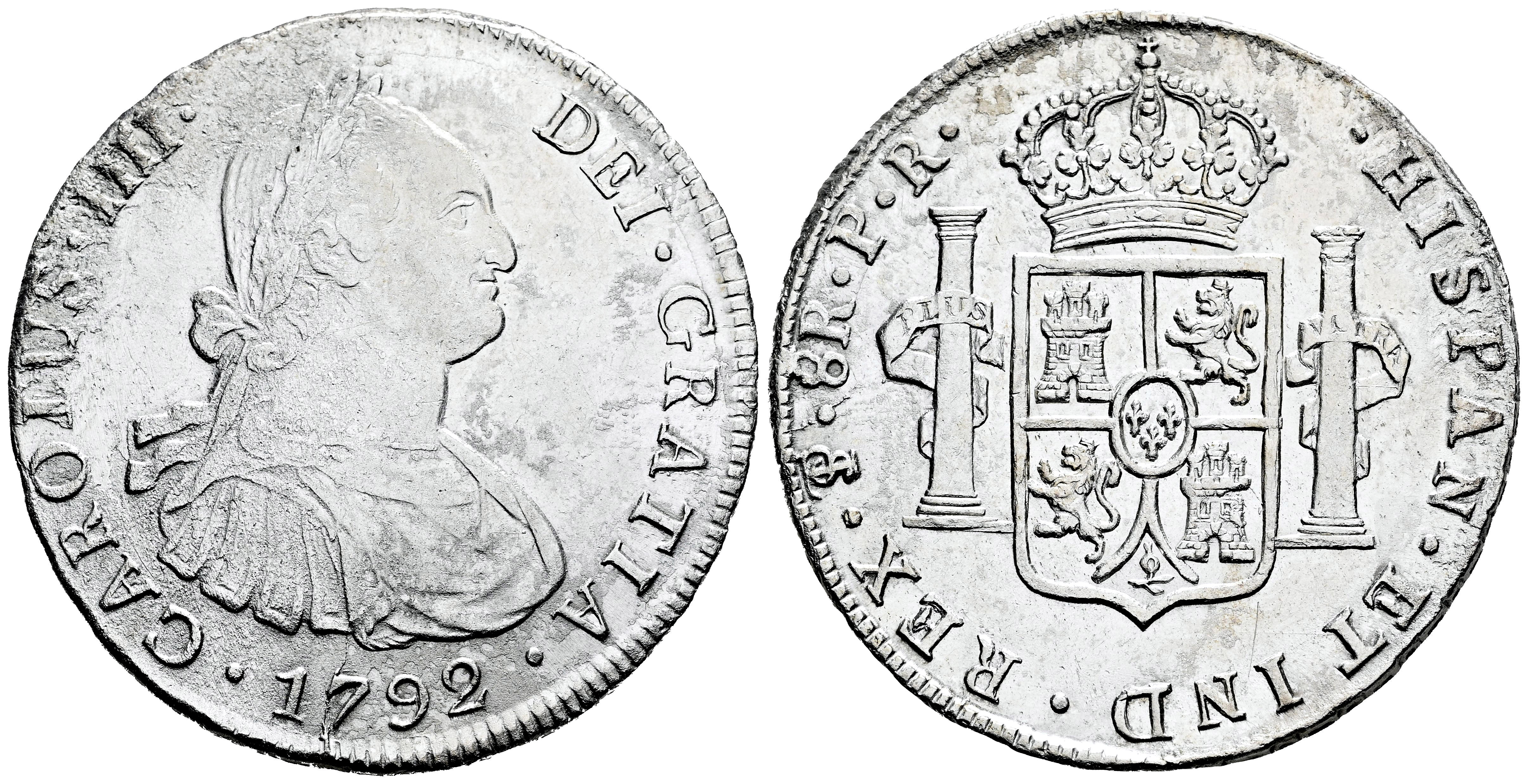 Carlos IV (1788-1808). 8 reales. 1792. Potosí. PR. (Cal-992). Ag. 26,80 g. Oxidaciones limpiadas. Buena acuñación del reverso. MBC/EBC-. Est...150,00.