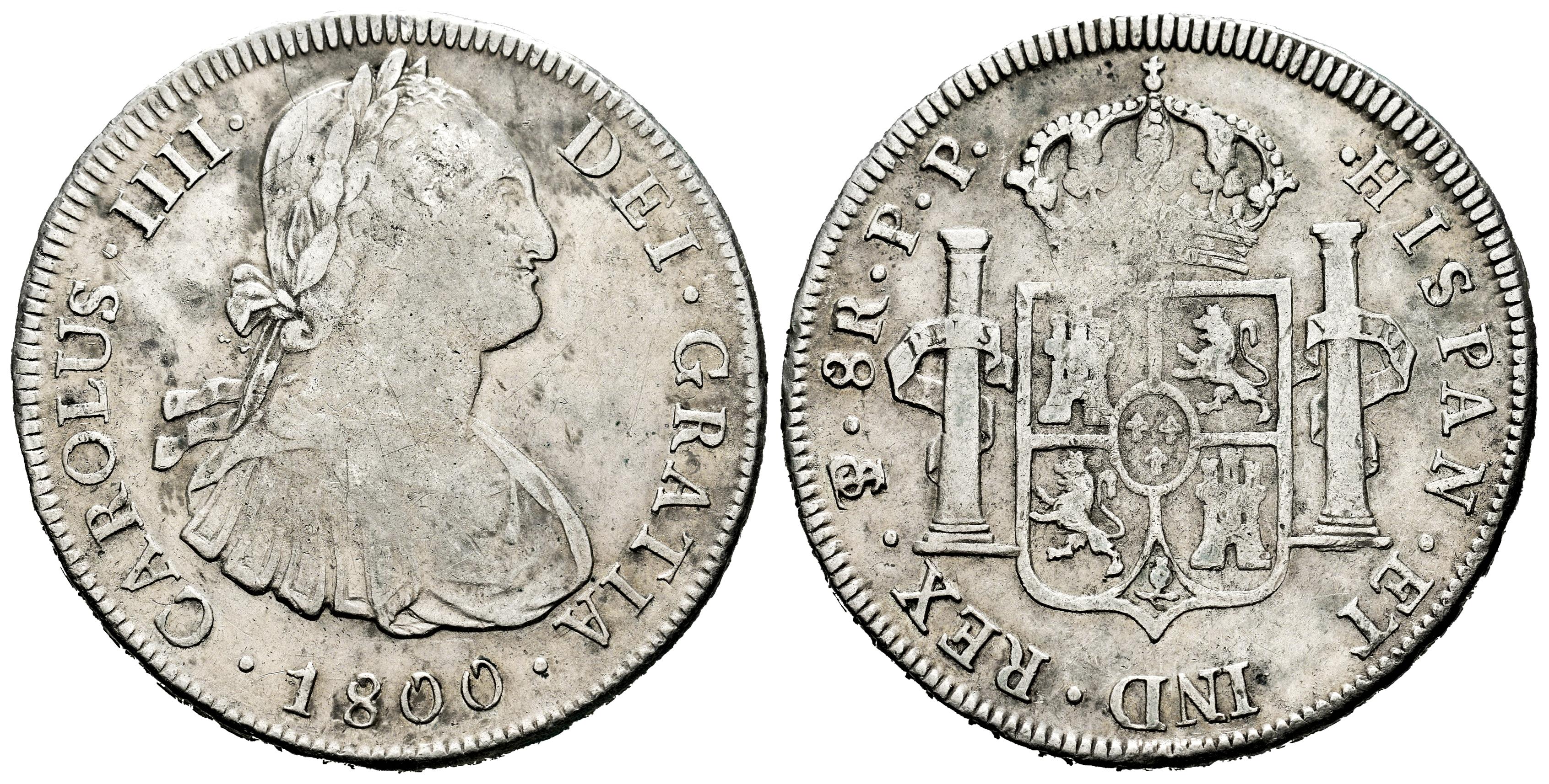 Carlos IV (1788-1808). 8 reales. 1800. Potosí. PP. (Cal-1004). Ag. 26,88 g. MBC-. Est...120,00.