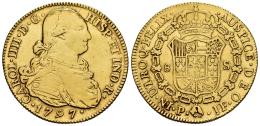 Carlos IV (1788-1808). 8 escudos. 1797. Popayán. JF. (Cal-1669). (Cal onza-1060). (Restrepo-98-14). Au. 26,63 g. Fue utilizada como joya. Limpiada. MBC-. Est...2500,00.