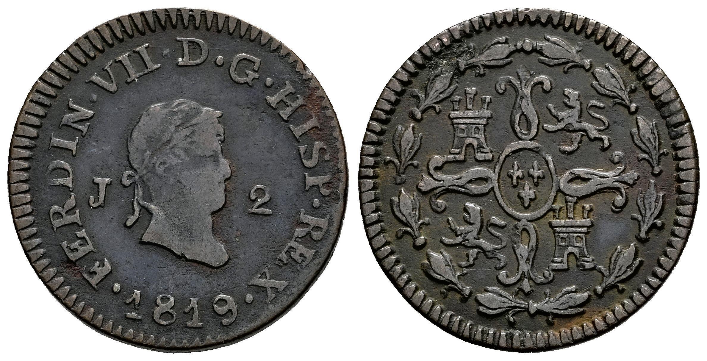 Fernando VII (1808-1833). 2 maravedís. 1819. Jubia. (Cal-133). Ae. 2,97 g. MBC. Est...30,00.