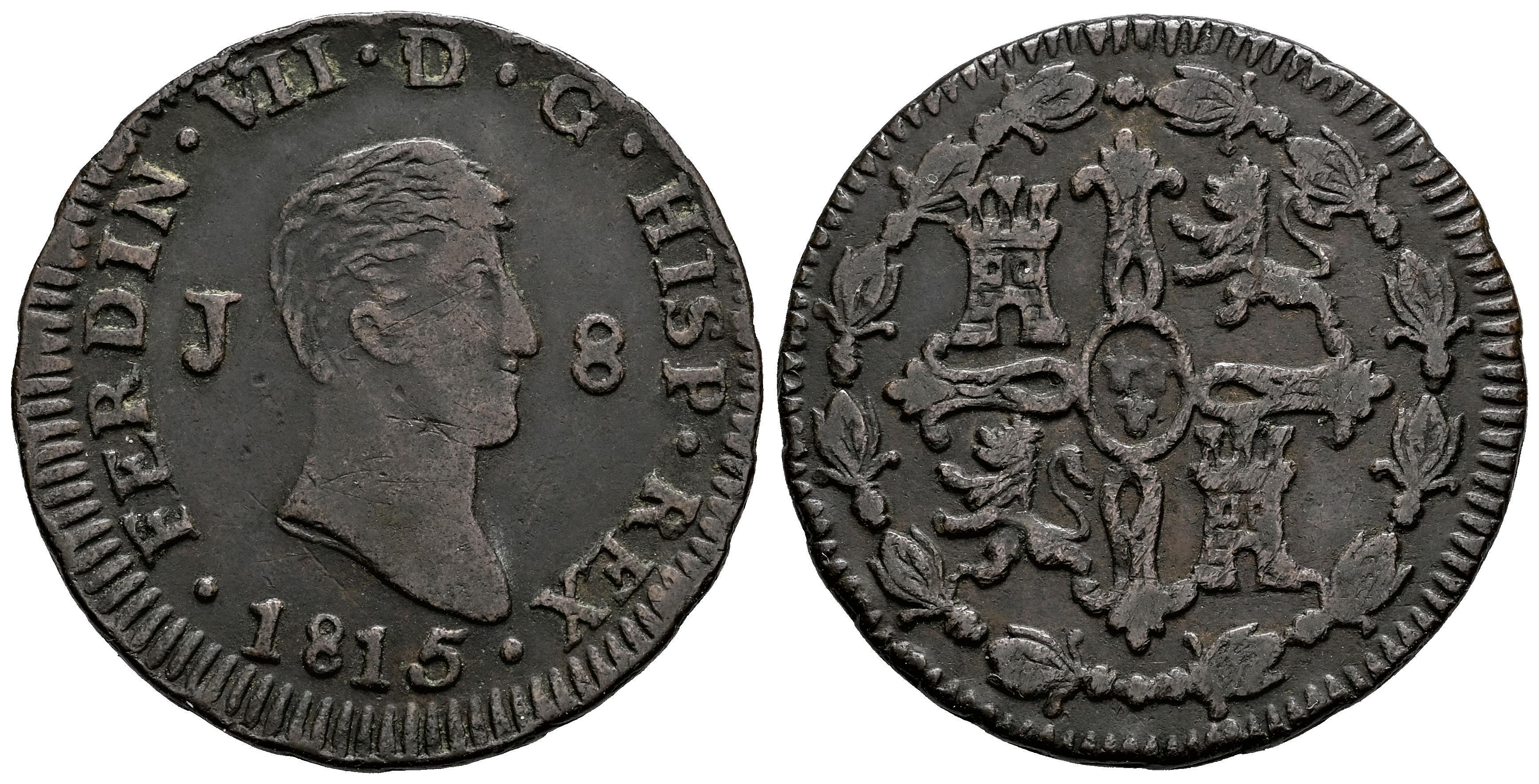 Fernando VII (1808-1833). 8 maravedís. 1815. Jubia. (Cal-193). Ae. 9,70 g. Busto desnudo. MBC. Est...40,00.