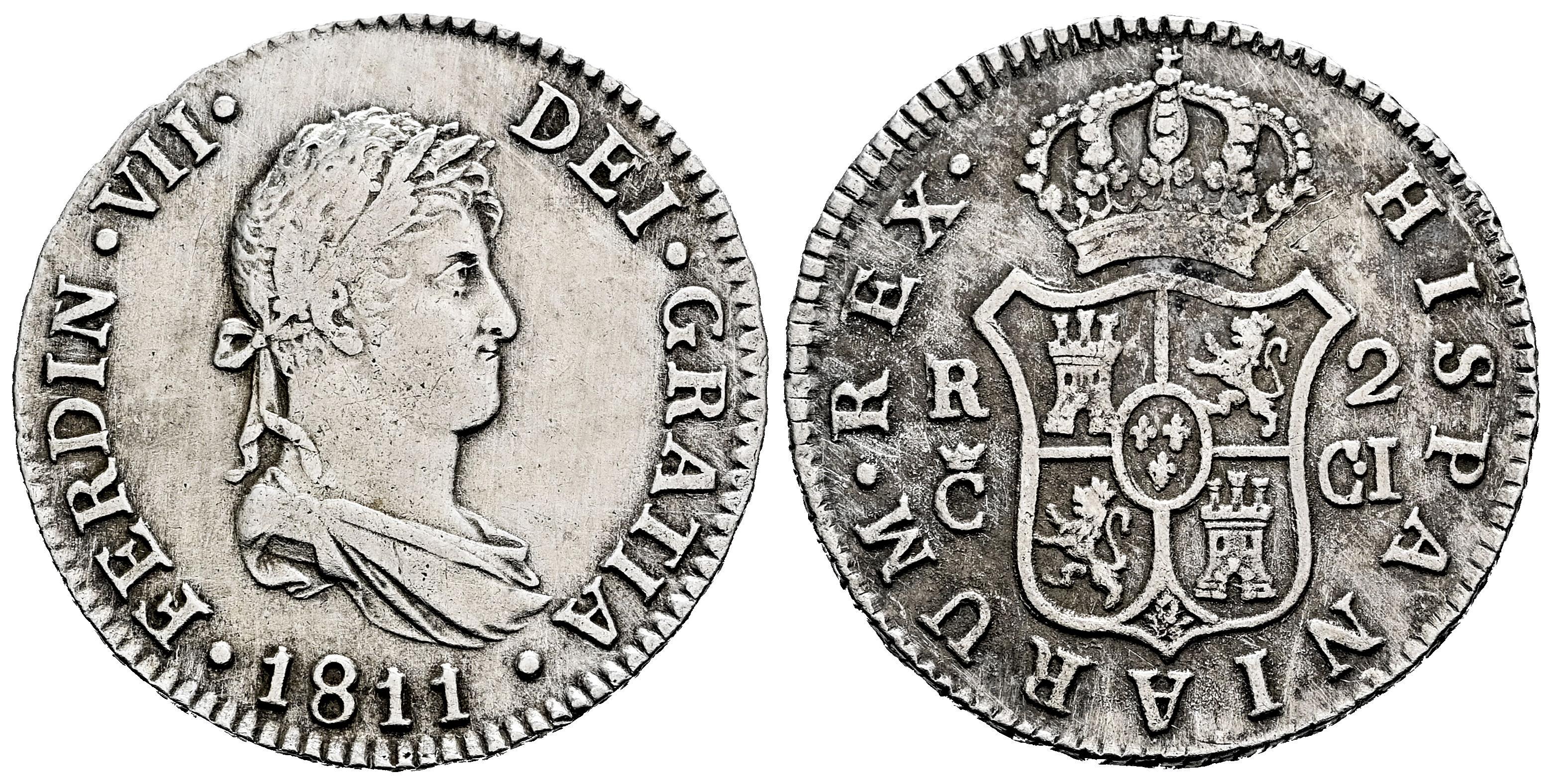 Fernando VII (1808-1833). 2 reales. 1811. Cádiz. CI. (Cal-726). Ag. 5,83 g. Frotada. MBC. Est...50,00.