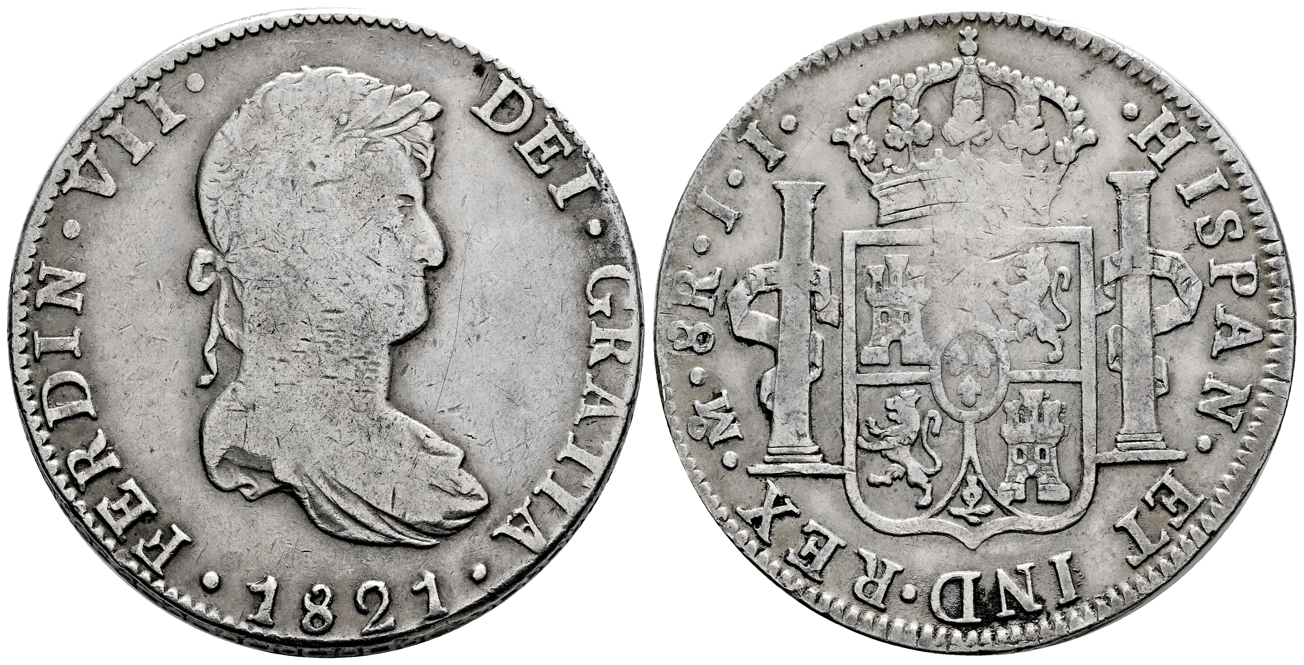 Fernando VII (1808-1833). 8 reales. 1821. México. IJ. (Cal-1337). Ag. 26,67 g. BC+. Est...70,00.
