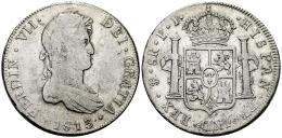 Fernando VII (1808-1833). 8 reales. 1813. Potosí. PJ. (Cal-1375). Ag. 26,72 g. BC+/MBC-. Est...75,00.