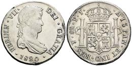 Fernando VII (1808-1833). 8 reales. 1820. Potosí. PJ. (Cal-1384). Ag. 26,89 g. Limpiada. MBC+/EBC-. Est...150,00.