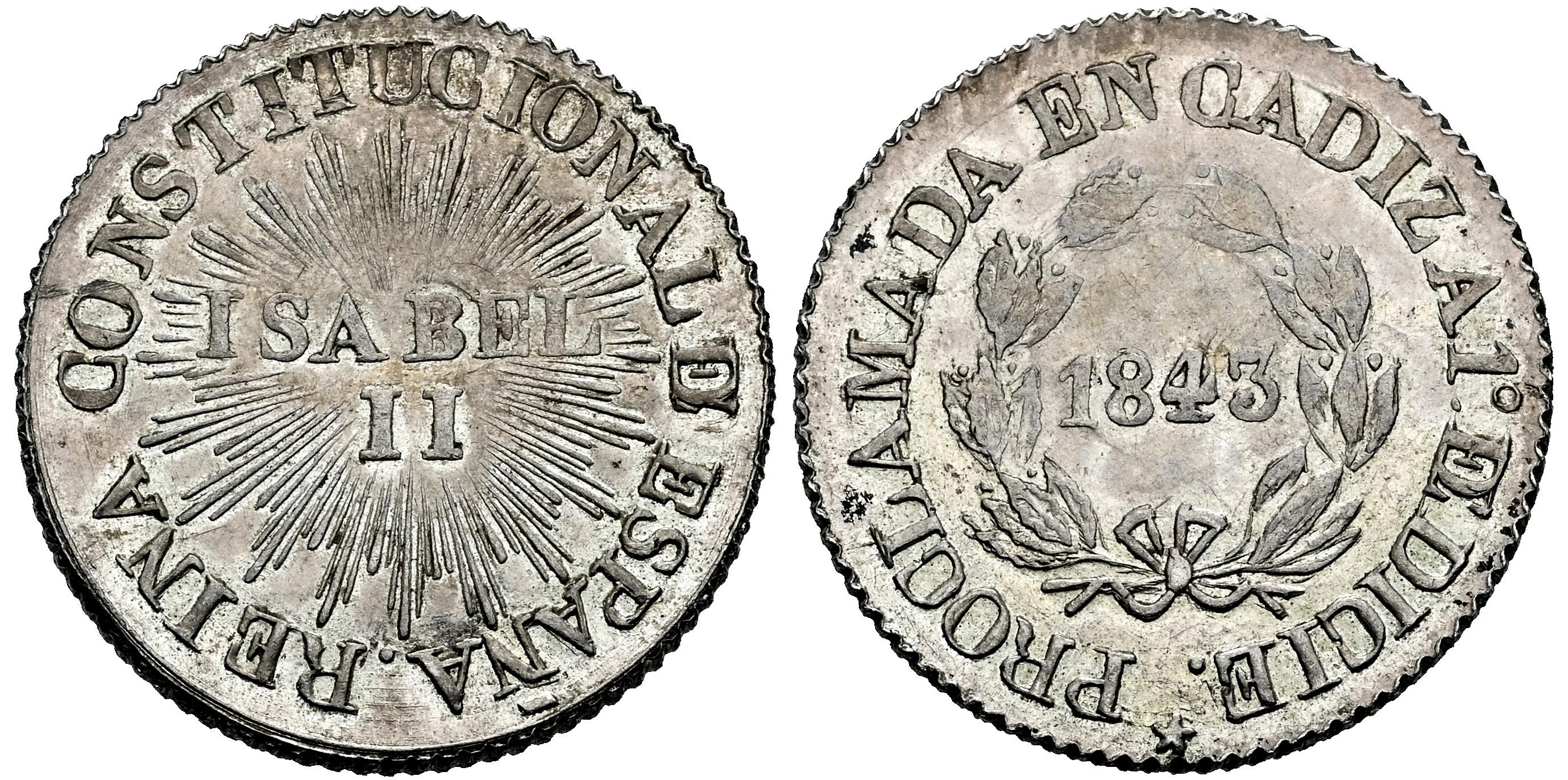 Isabel II (1833-1868). Medalla de mayoría de edad. 1843. Cádiz. (Herrera-4). (Vives-780). (Vq-13412). Ag. 7,25 g. 23 mm. EBC-. Est...70,00.