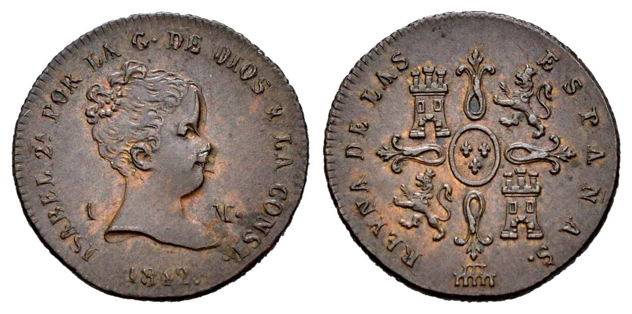 Isabel II (1833-1868). 1 maravedí. 1842. Segovia. (Cal-35). Ae. 1,51 g. EBC. Est...70,00.
