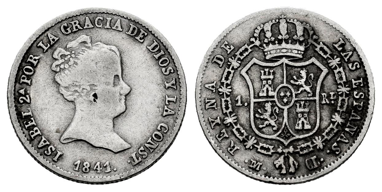 Isabel II (1833-1868). 1 real. 1841. Madrid. CL. (Cal-294). Ag. 1,48 g. Golpe de punzón en anverso. BC+/MBC. Est...60,00.