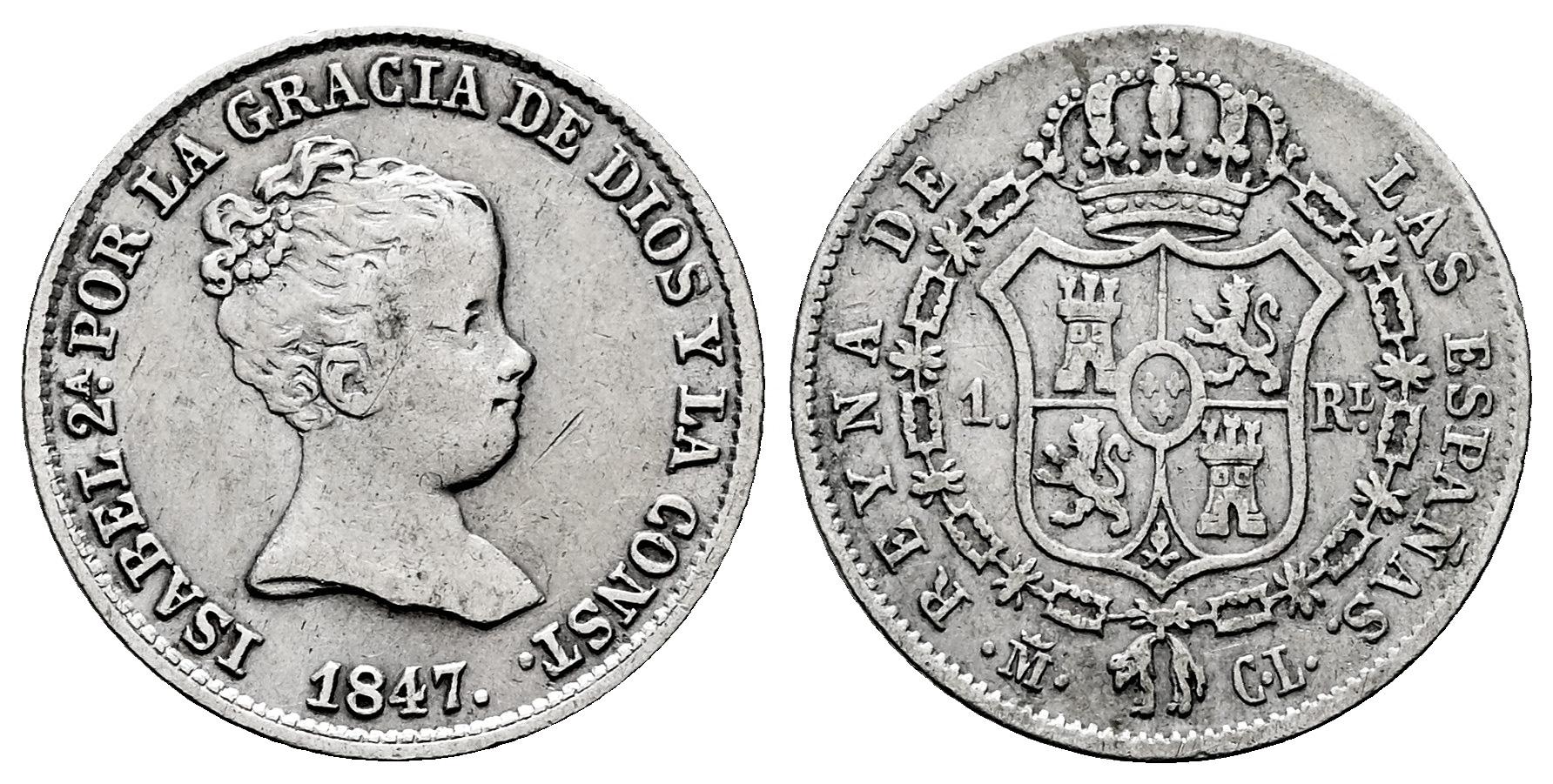 Isabel II (1833-1868). 1 real. 1847. Madrid. CL. (Cal-299). Ag. 1,44 g. MBC-. Est...25,00.