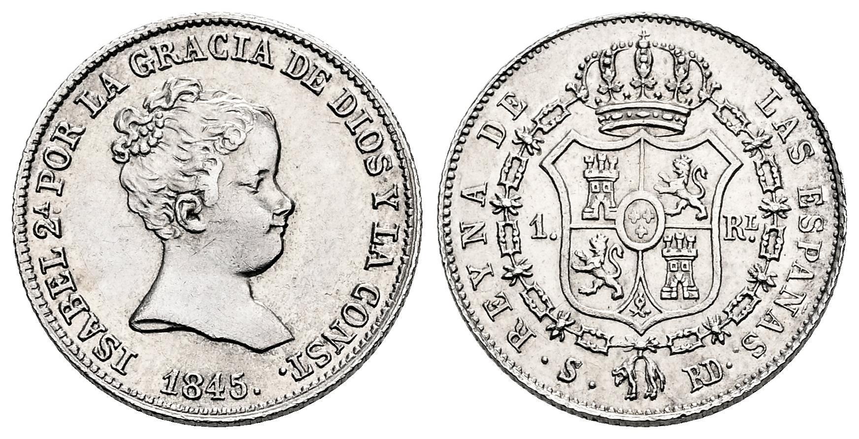 Isabel II (1833-1868). 1 real. 1845. Sevilla. RD. (Cal-316). Ag. 1,52 g. Ex Soler & Llach 1113 (21/05/2020), lote 319. EBC. Est...80,00.