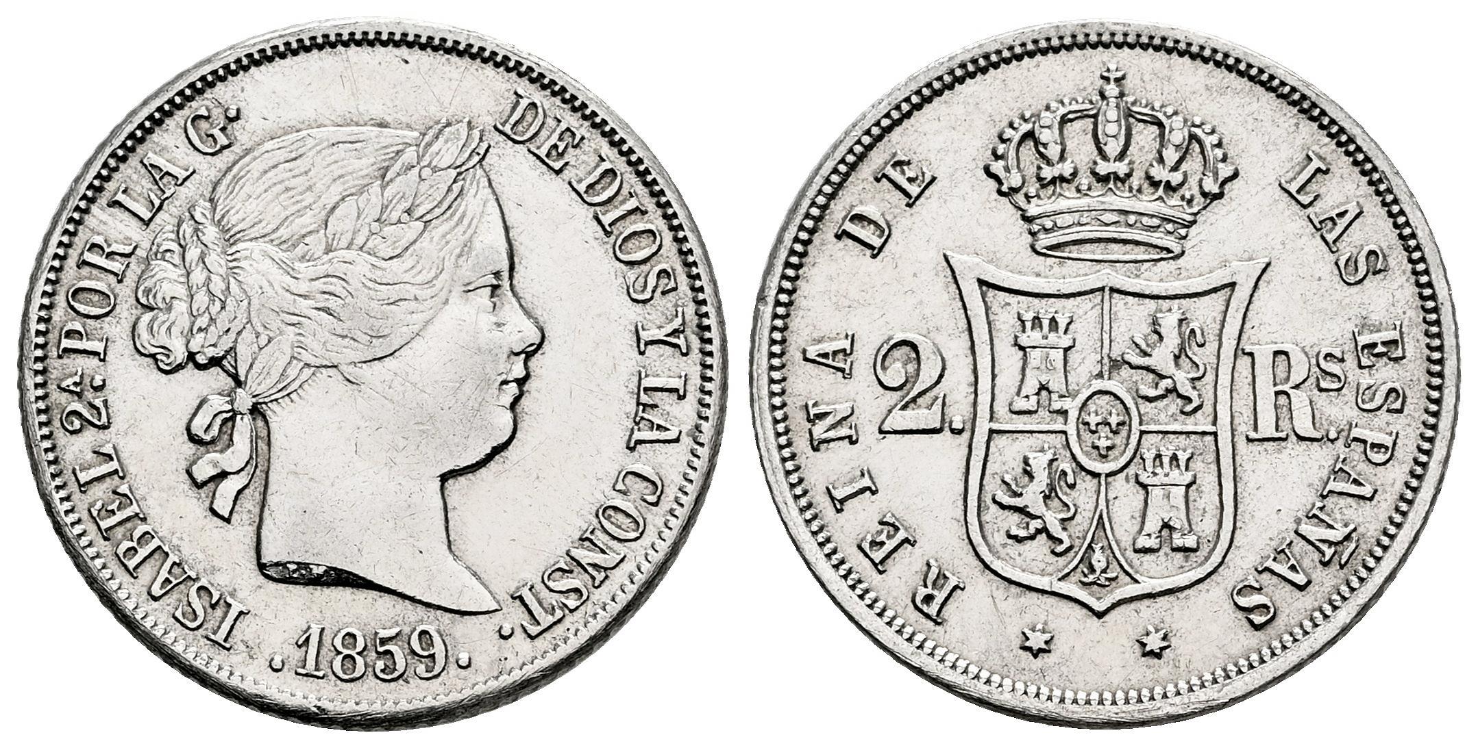 Isabel II (1833-1868). 2 reales. 1859. Madrid. (Cal-374). Ag. 2,48 g. Limpiada. MBC+. Est...60,00.