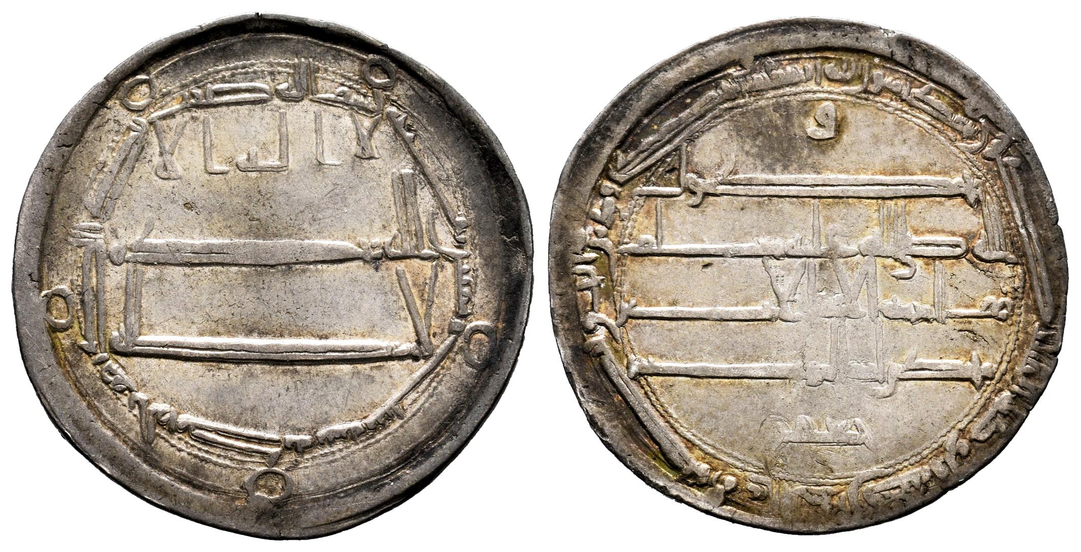 Califato Abásida. Harun al-Rashid. Dirham. 186 H. Al-Muhammadiya. (Album-219.9). (Lowick-1843). Ag. 2,86 g. Citing a Ja`Far en IIA. Suave pátina con ligero tono iridisente. MBC+. Est...60,00.