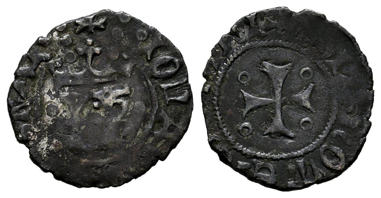 Reino de Navarra. Juan y Catalina (1483-1512). Cornado. Navarra. (Ros-3.20.24). (Cru V.S-293). Anv.: + · IOHA ... KAT · . IK coronadas acotadas por roeles. Rev.: + SIT : NOMEN DOMINI. Cruz con roeles en los cuarteles. Ve. 0,83 g. Ex Tauler&Fau, Colección Príncipe de Viana (24/06/2024), lote 1344. BC+/MBC-. Est...40,00.