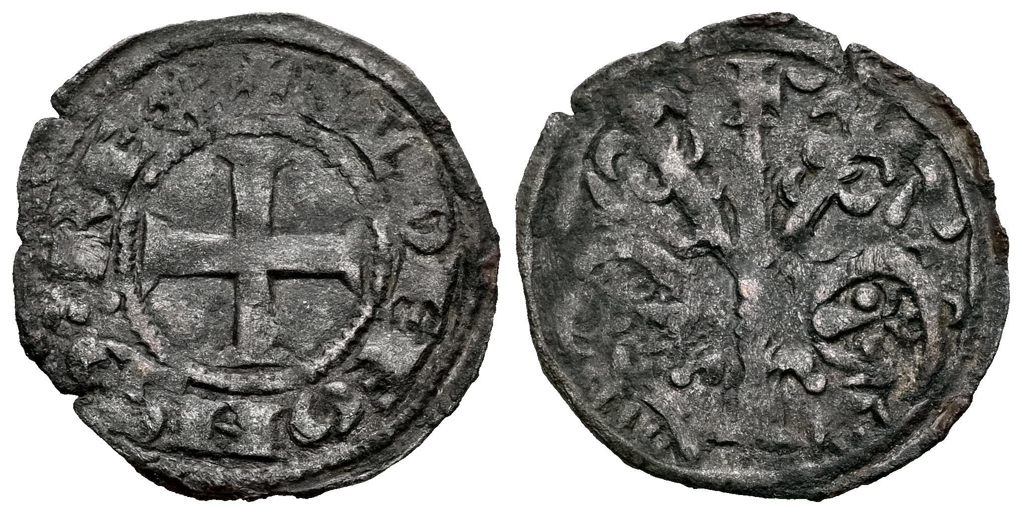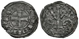 Reino de Castilla y León. Alfonso IX (1188-1230). Dinero. (Bautista-243). Ve. 0,78 g. Crecientes a los lados de la cruz. MBC. Est...60,00.