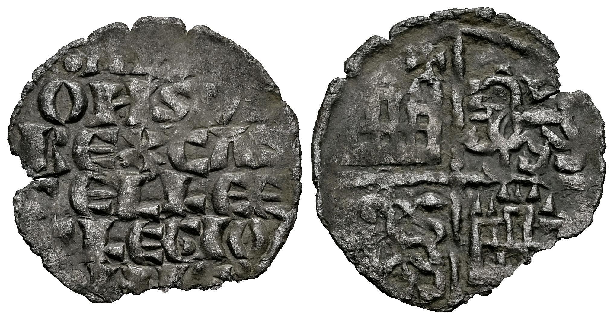 Reino de Castilla y León. Alfonso X (1252-1284). Dinero de seis líneas. (Bautista-362). Ve. 0,67 g. Cruz en el 1º cuartel. MBC. Est...40,00.