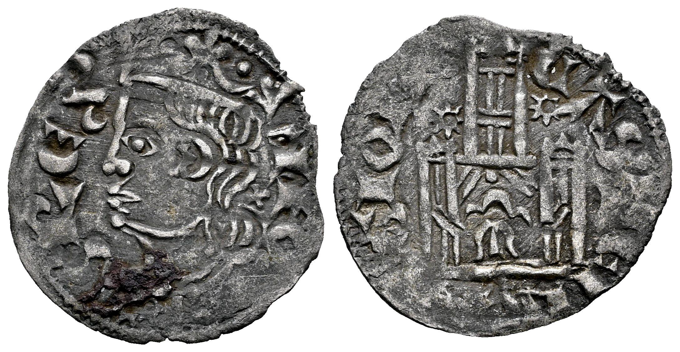 Reino de Castilla y León. Alfonso XI (1312-1350). Cornado. Murcia. (Bautista-476). Ve. 0,65 g. M en la puerta y roeles radiados sobre las torres del castillo. Leve oxidación en anverso. Ex Soler & Llach 1097 (07/07/2017), lote 2487. MBC. Est...40,00.