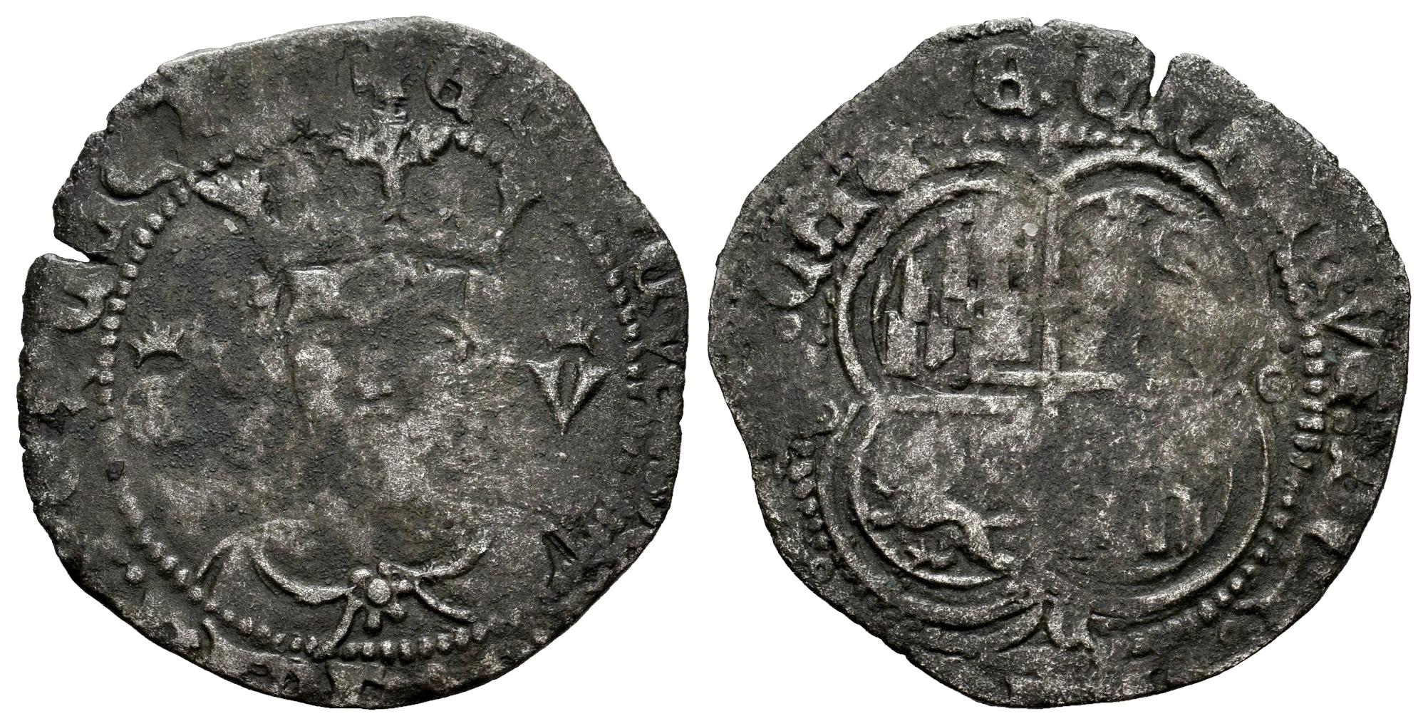 Reino de Castilla y León. Enrique II (1368-1379). Real de vellón. Coruña. (Bautista-593.2). Bi. 2,40 g. E V coronadas a los lados del busto. Con roeles y C en el extremo inferior del eje. Ex Cayón (26/10/2022), lote 2043. BC+. Est...50,00.