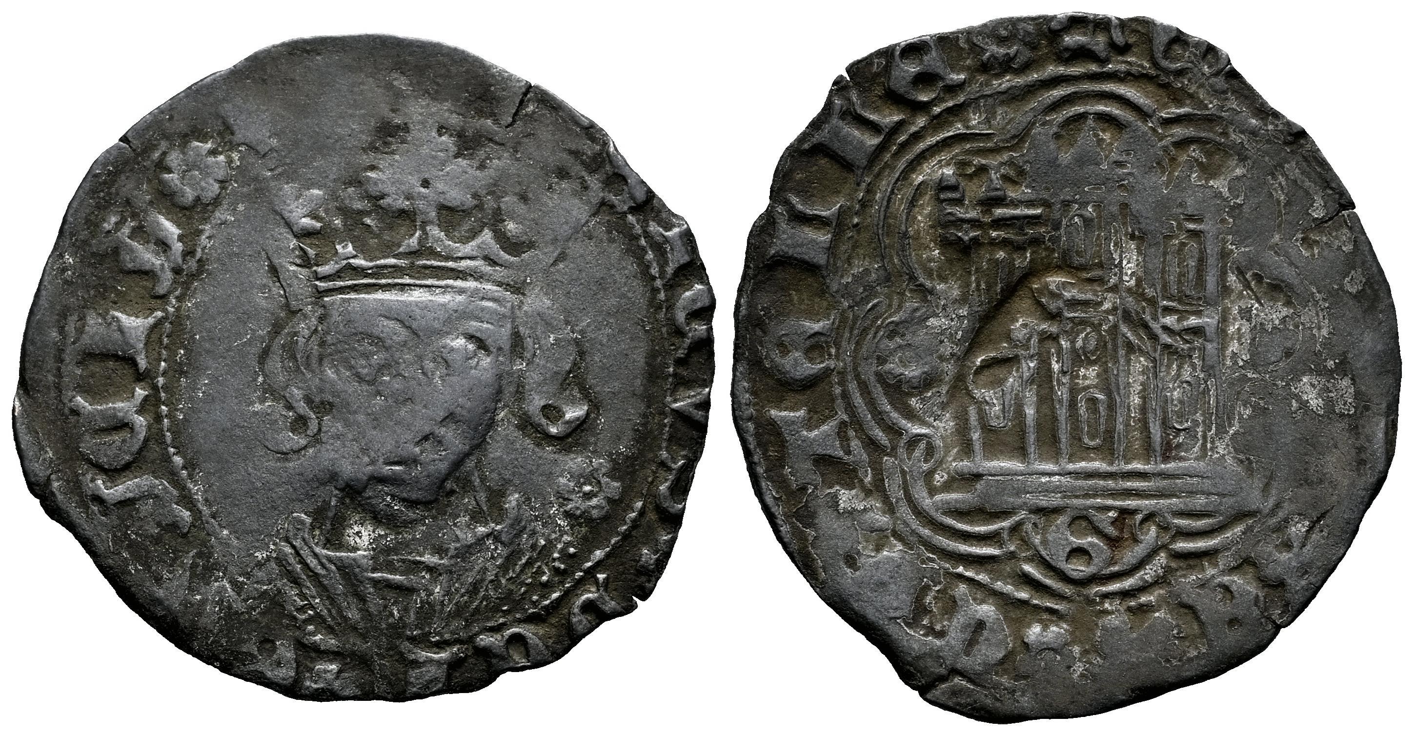 Reino de Castilla y León. Enrique IV (1454-1474). Cuartillo. Guadalajara. (Bautista-1012.3). (MMM-D.3.1). Anv.: ... RICVS ✿ DEI ✿ G(R)ACIA ✿ ... Busto coronado de frente y florón a la derecha. Rev.: + EN ... REX ✿ CASTELLE ✿. G bajo el castillo y este acotado por florones. Ve. 2,01 g. Contramarca de difícil interpretación sobre el reverso, M. Mozo indica que podría tratarse de un cordero, un perro o un lobo en positivo y dentro de un recuadro. Muy rara. MBC-. Est...120,00.