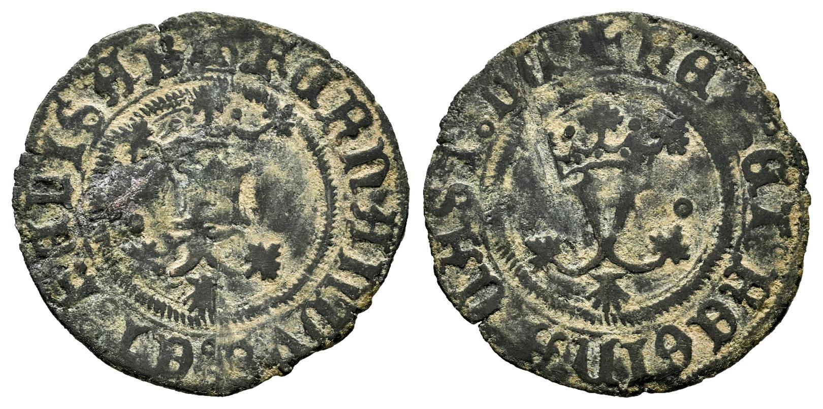 Fernando e Isabel (1474-1504). Blanca. Coruña. (Cal-8). (Rs-281). Ae. 0,98 g. Venera en anverso y reverso. Escasa. MBC. Est...35,00.
