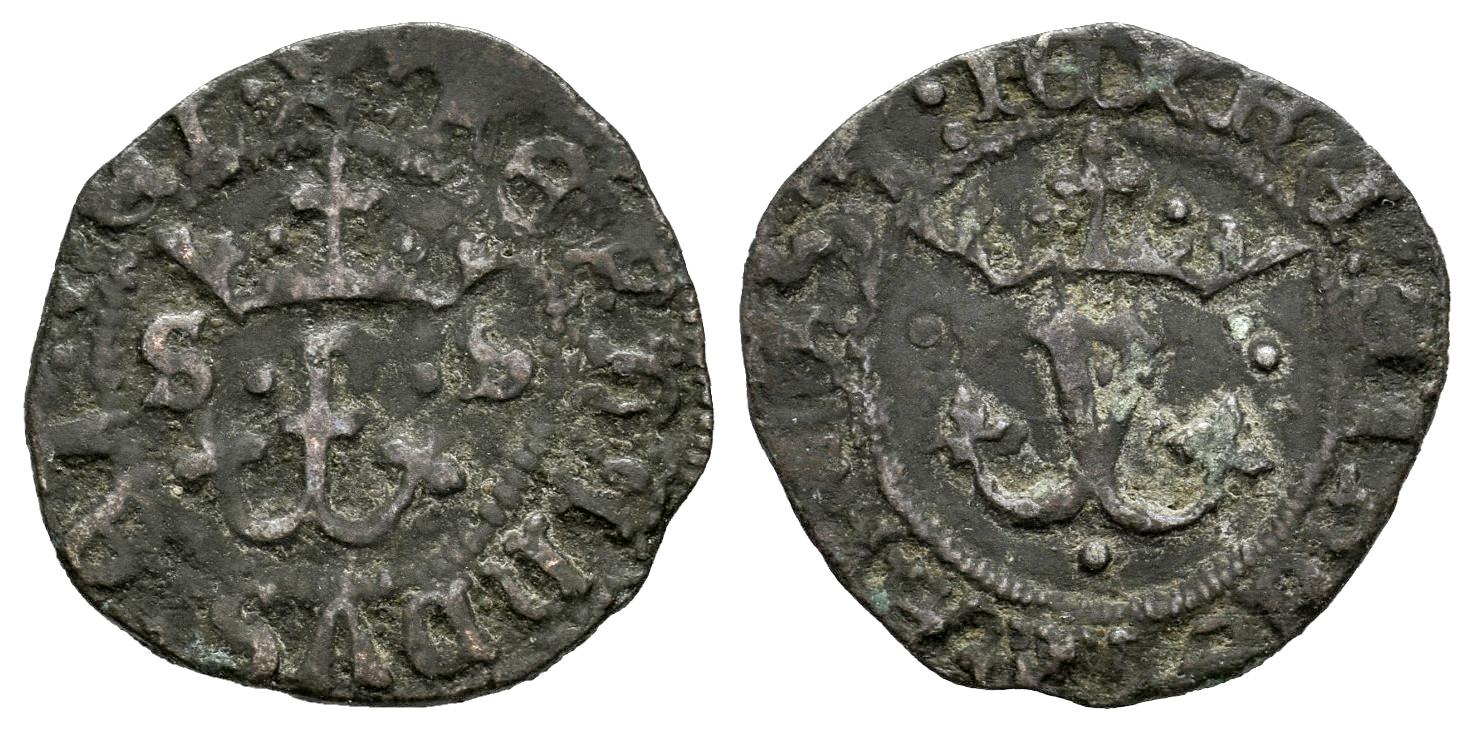 Fernando e Isabel (1474-1504). Blanca. Sevilla. (Cal-44). (Rs-760). Ae. 1,30 g. S-S a los lados de la F. MBC-. Est...20,00.