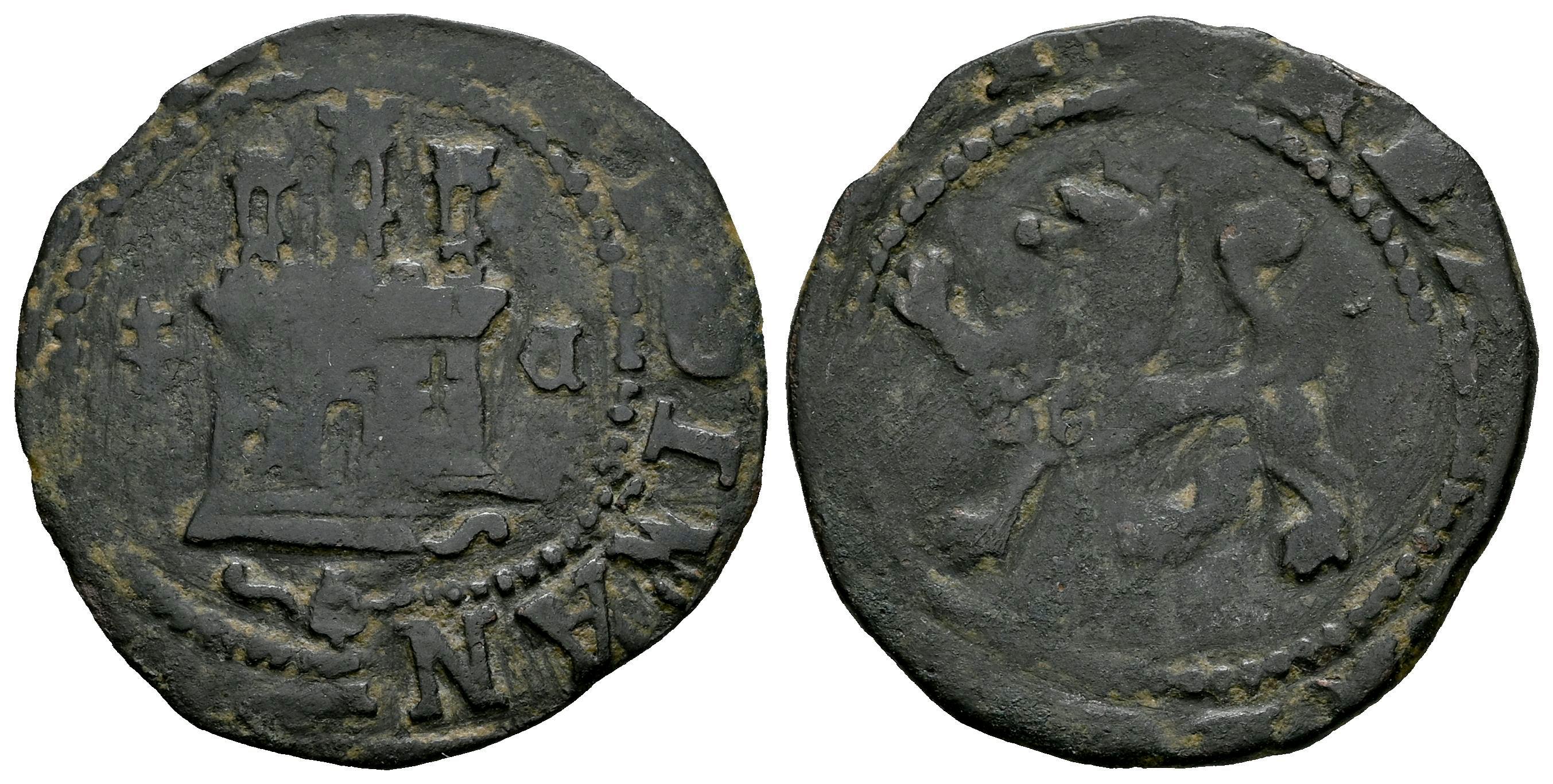 Fernando e Isabel (1474-1504). 2 maravedís. Cuenca. Cruz patriarcal. (Cal-89). Ve. 2,88 g. MBC. Est...30,00.