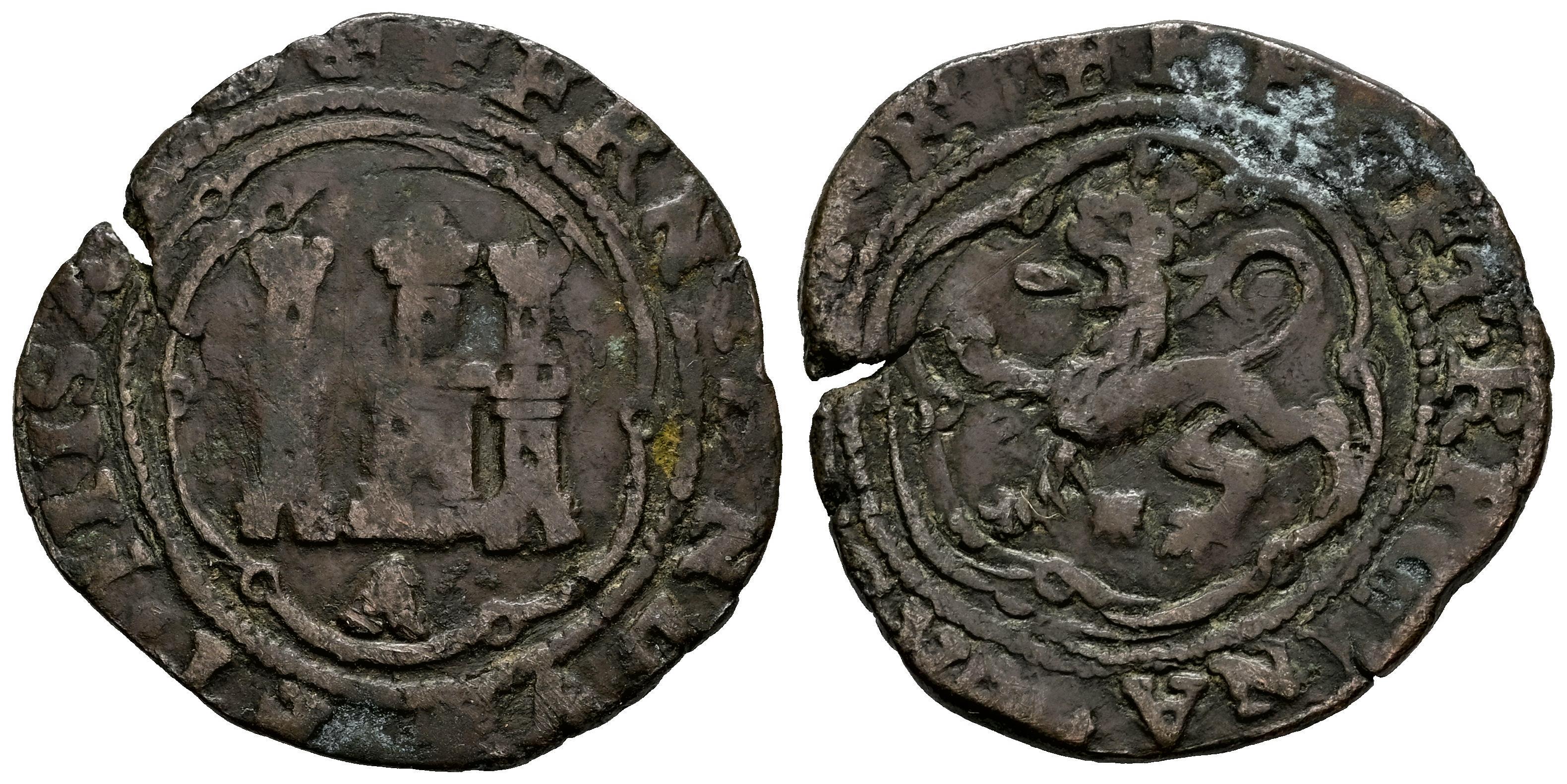 Fernando e Isabel (1474-1504). 4 maravedís. Coruña. A. (Cal-125). (Bautista-0515). Ve. 7,02 g. Venera entre las patas del león. Ex Colección Orol. MBC. Est...50,00.